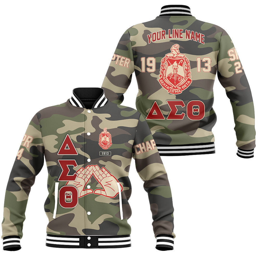 Personalized Delta Sigma Theta Baseball Jackets Camouflage Handsign And Founded Year Style