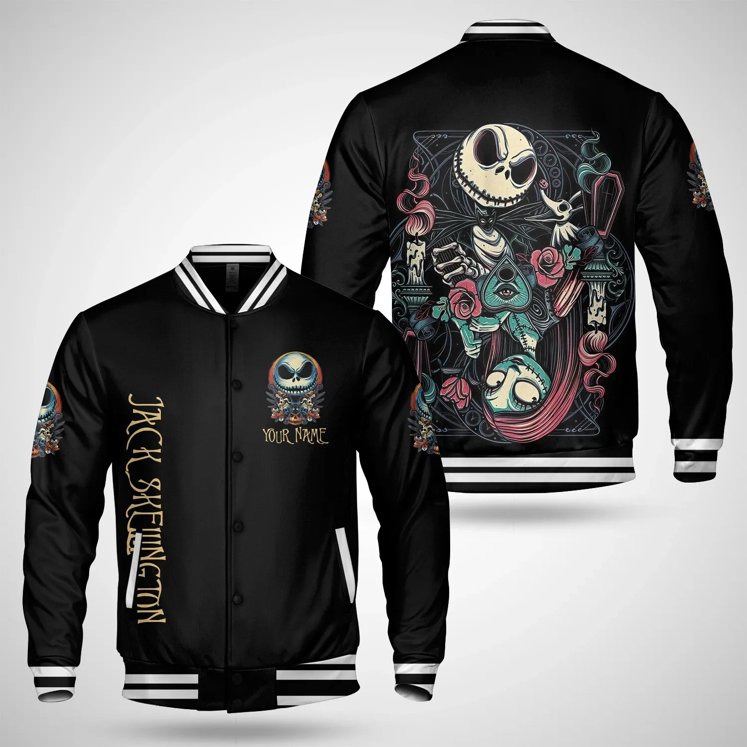 Personalized Horror Jackk Skellingtonn Nightmare Before Christmas Baseball Jacket