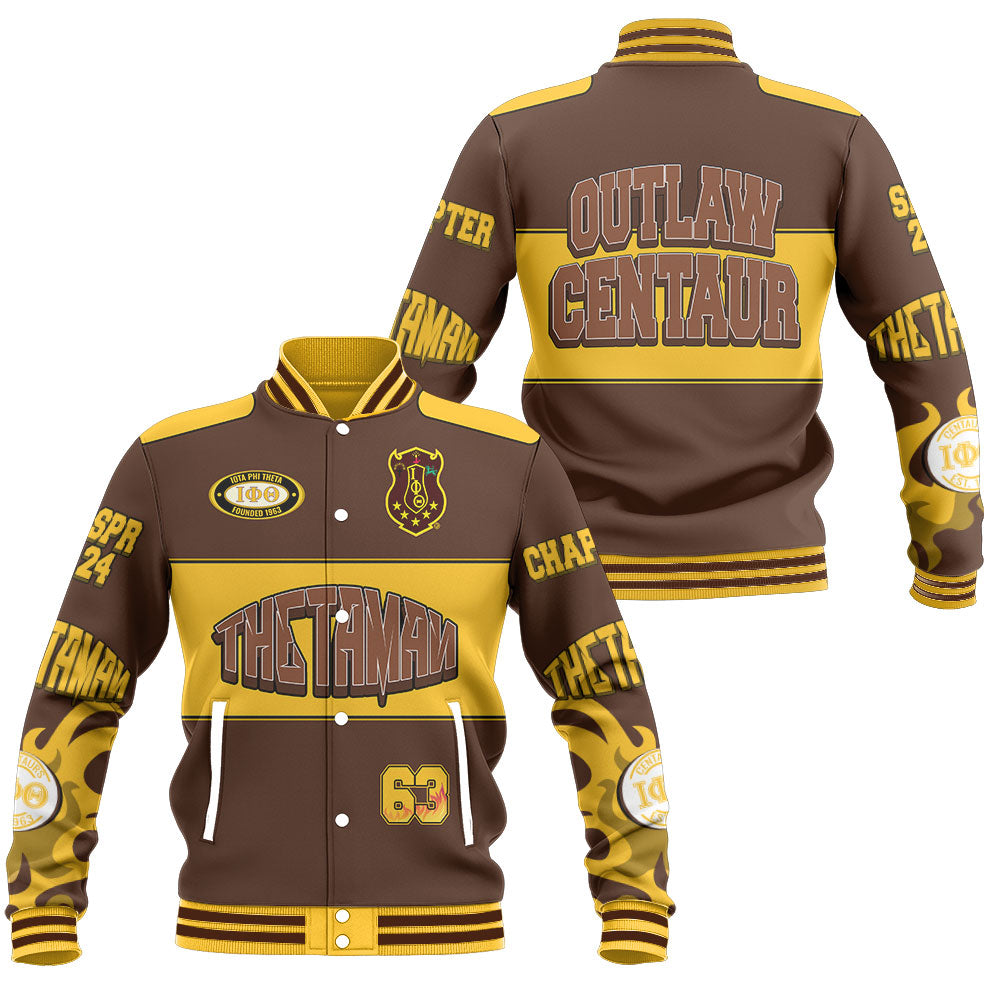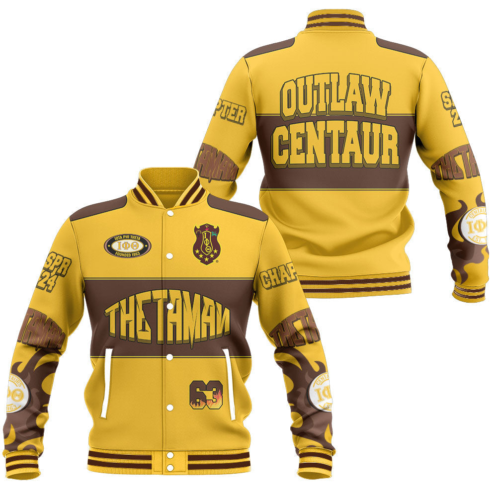 Personalized Iota Phi Theta Baseball Jacket Gold Flame Style