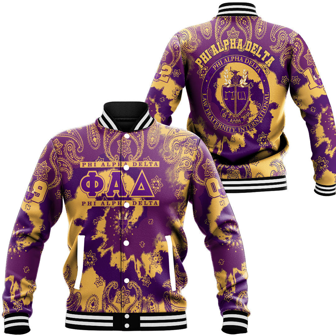 Phi Alpha Delta Paisley Bandana Tie Dye Style Baseball Jackets Button For Men Women