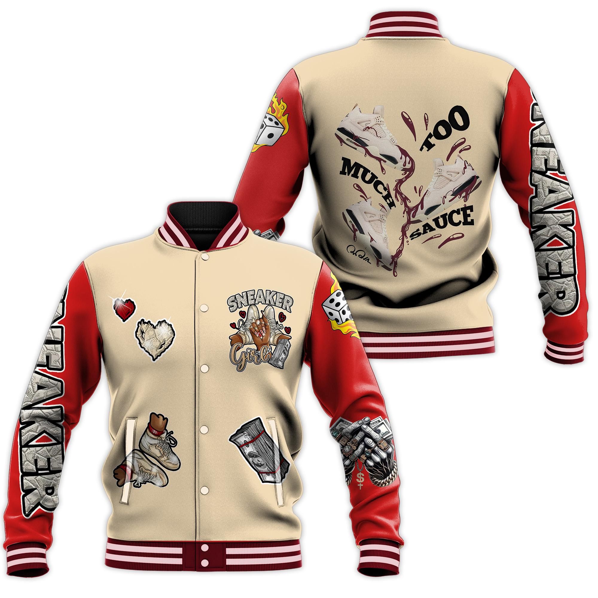 Sneakerz Girlz Too Much Sauce Sneaker All Over Print Baseball Jacket