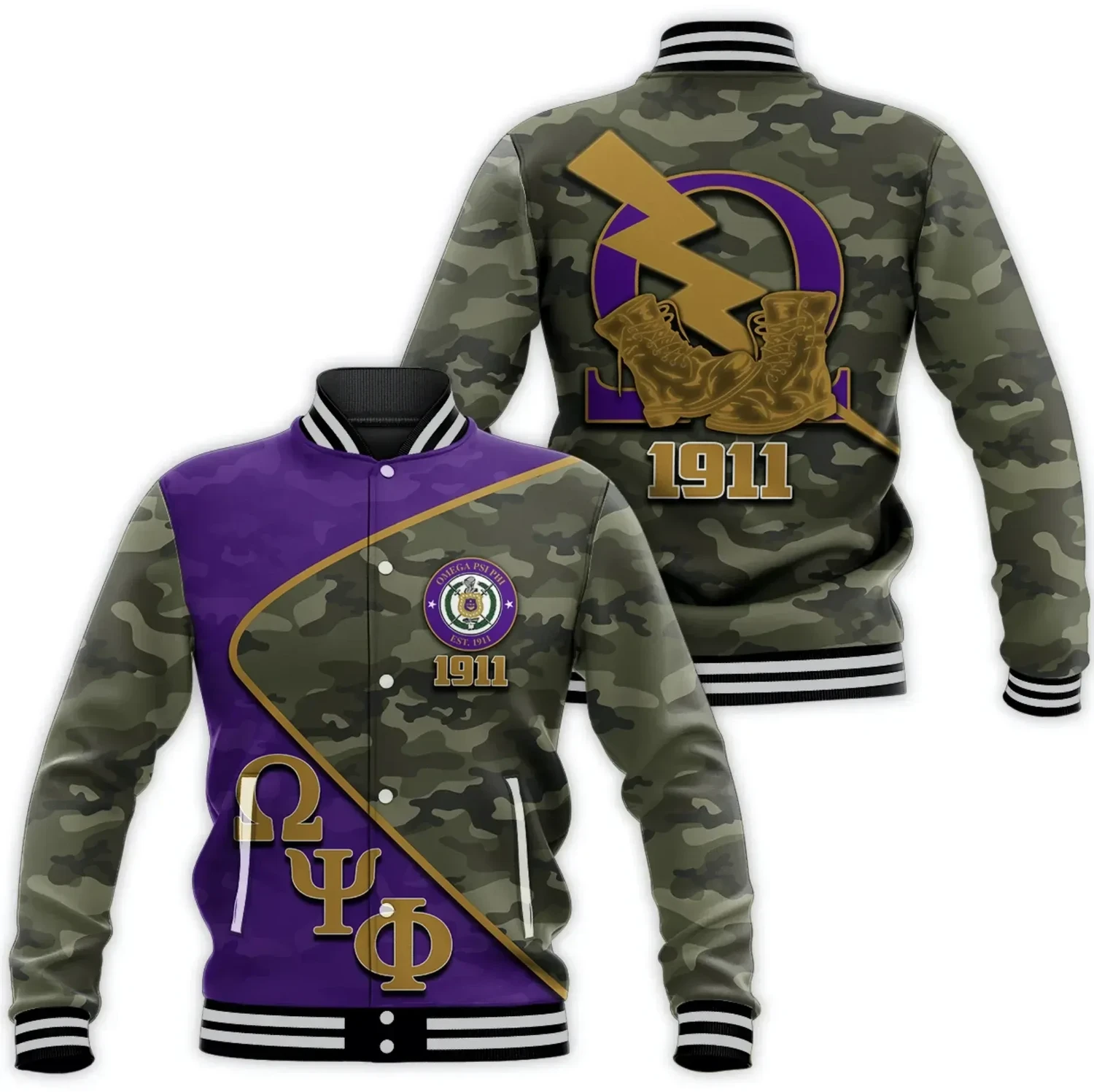 Omega Psi Phi Army Boots 1911 Baseball Jacket