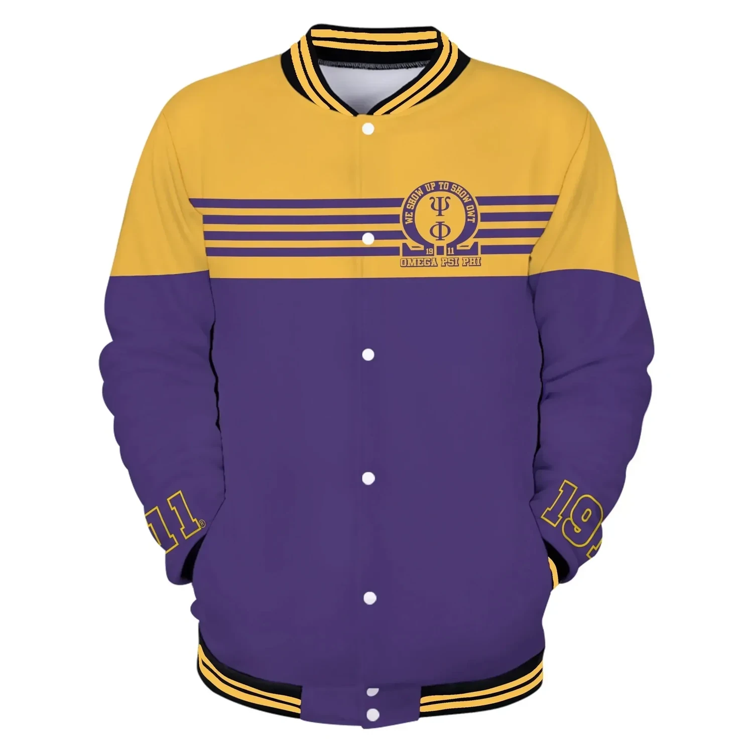 Omega Psi Phi We Show Up To Show Out Baseball Jacket