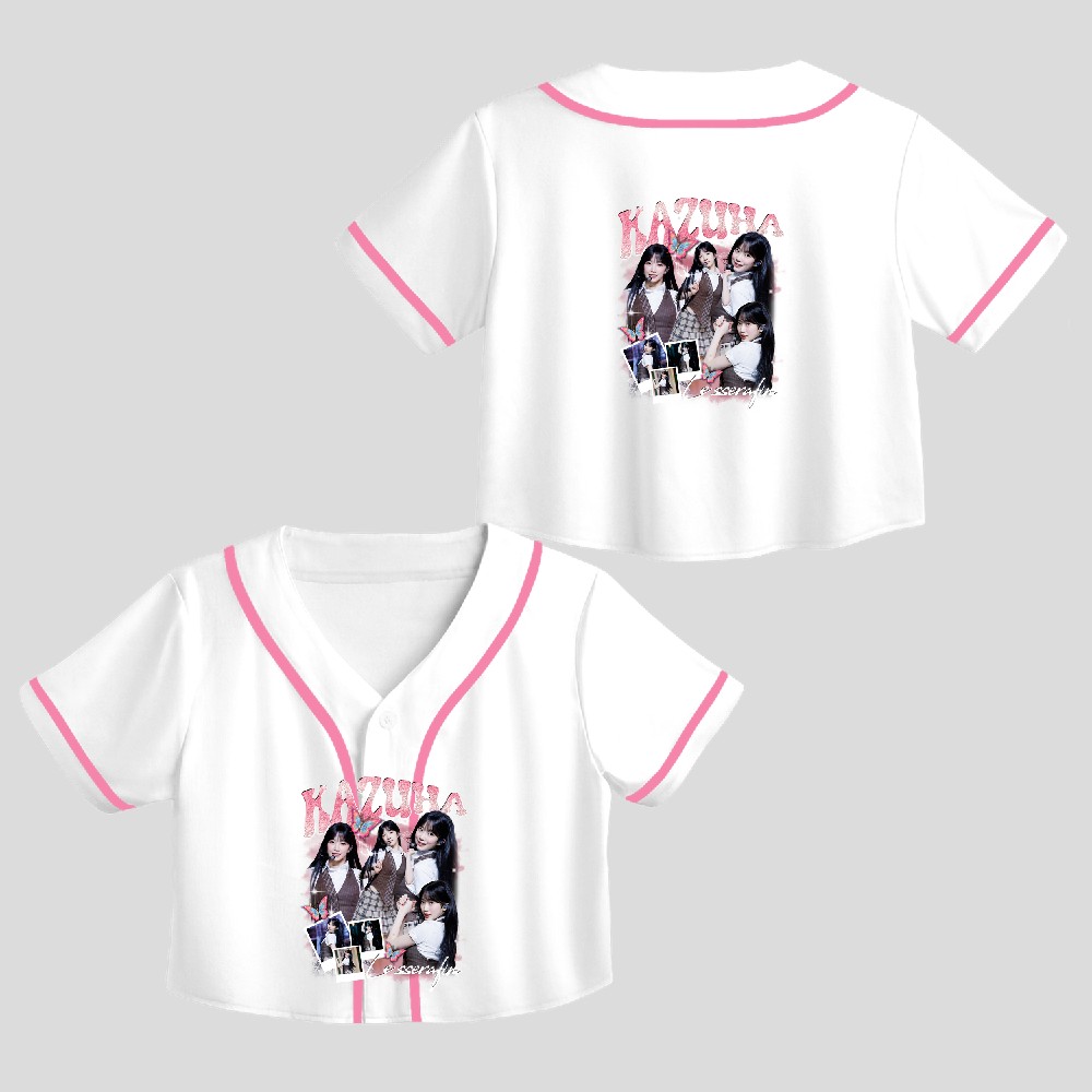 Le Sserafim Kazuha Retro Bootleg Crop Top Baseball Jersey
