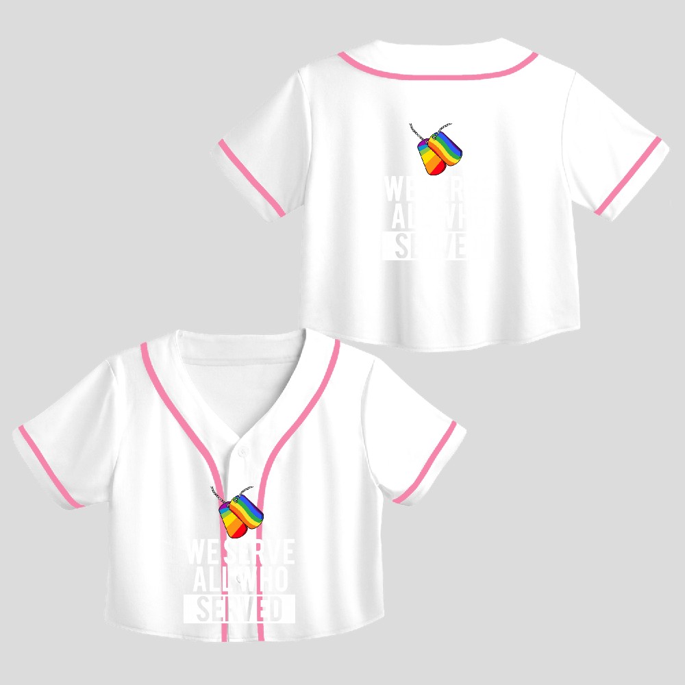 Lgbt Gay Military Pride We Serve All Who Served Dog Crop Top Baseball Jersey