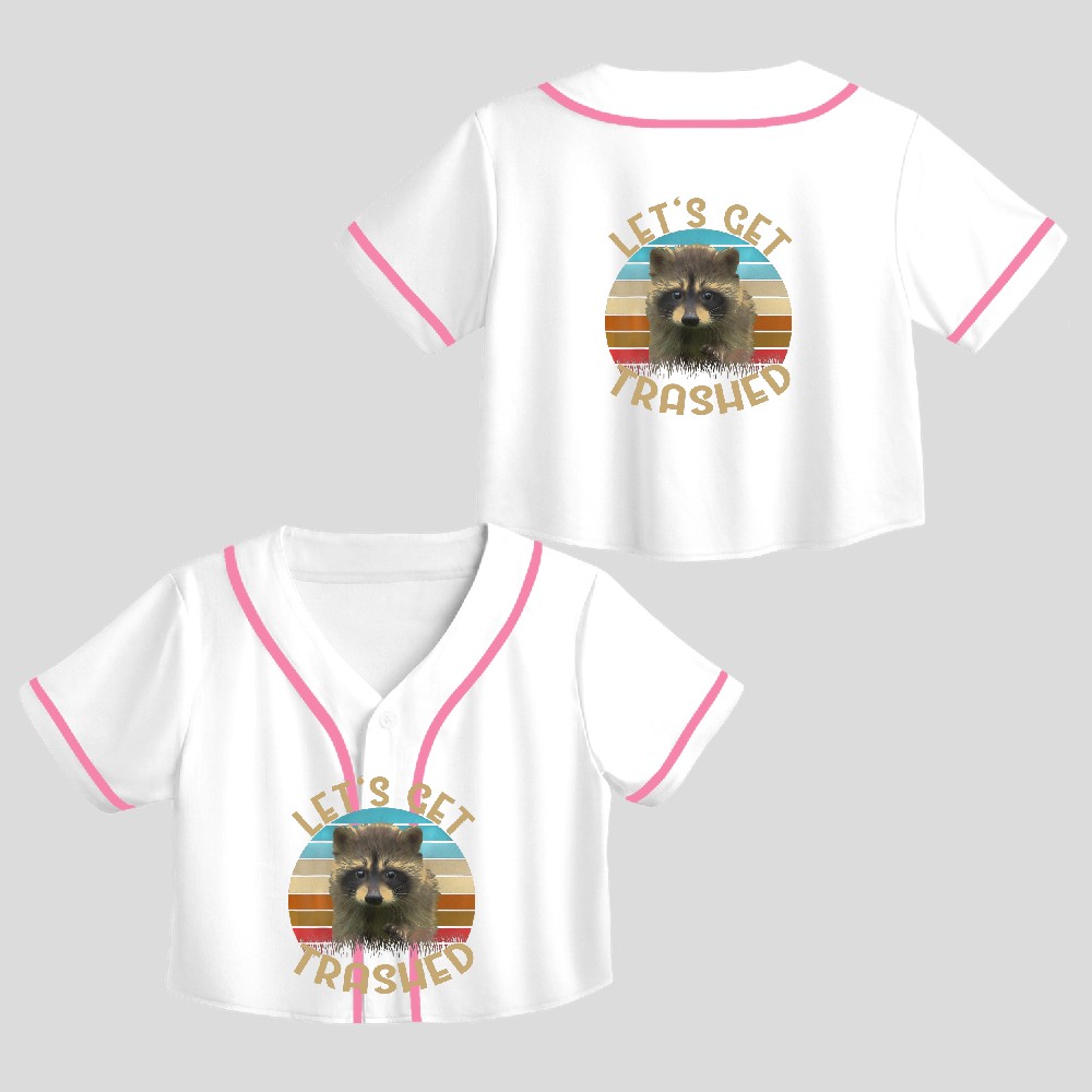 Let’S Get Trashed Raccoon Crop Top Baseball Jersey