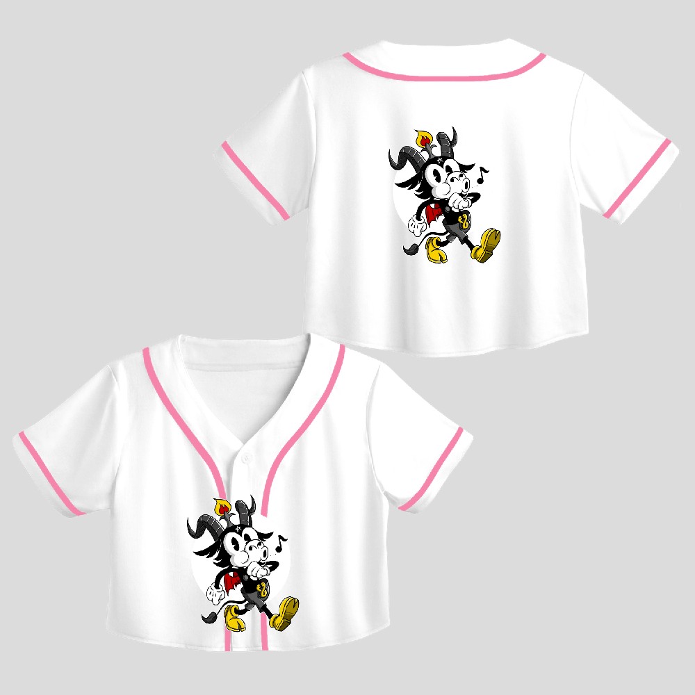 Atheist Satan Cute Baphomet Crop Top Baseball Jersey