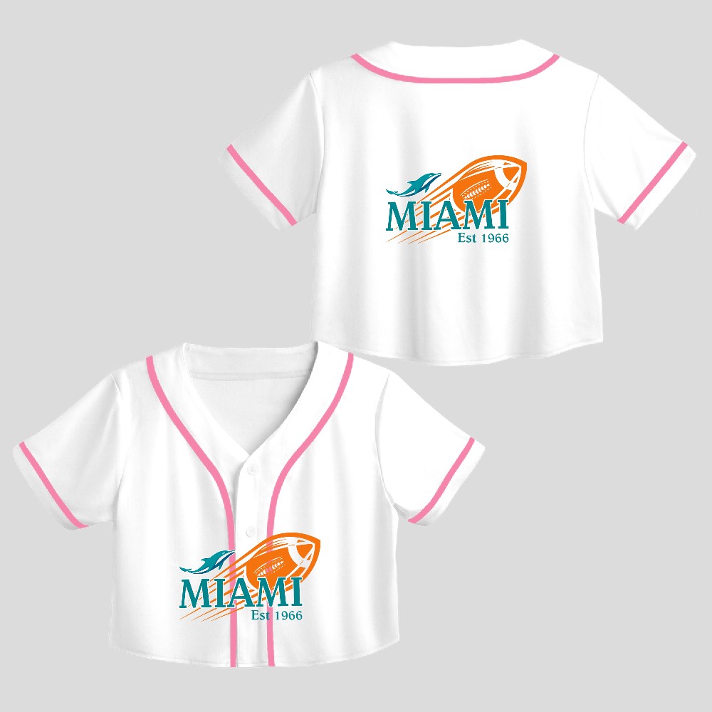 Miamest 1966 Sports Team Athletic Novelty Dolphin Crop Top Baseball Jersey