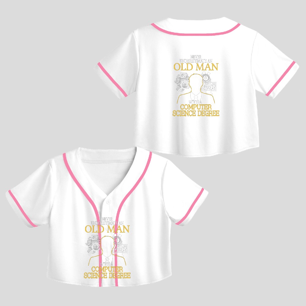 Never Underestimate Old Man Computer Science Crop Top Baseball Jersey