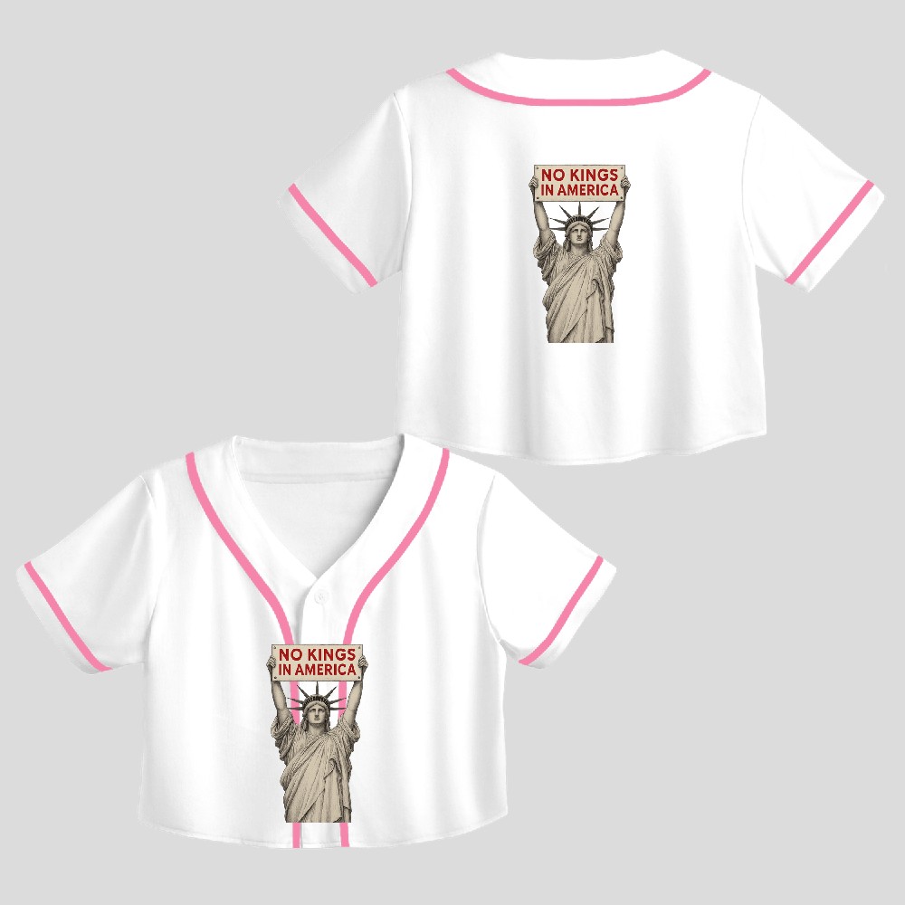No Kings Statue Of Liberty Anti Trump Protest Crop Top Baseball Jersey