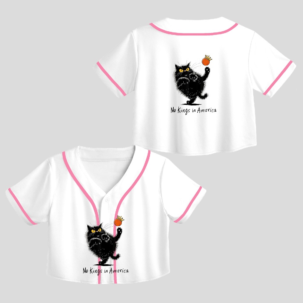No Kings In America Black Cat No Kings Political Meme Crop Top Baseball Jersey