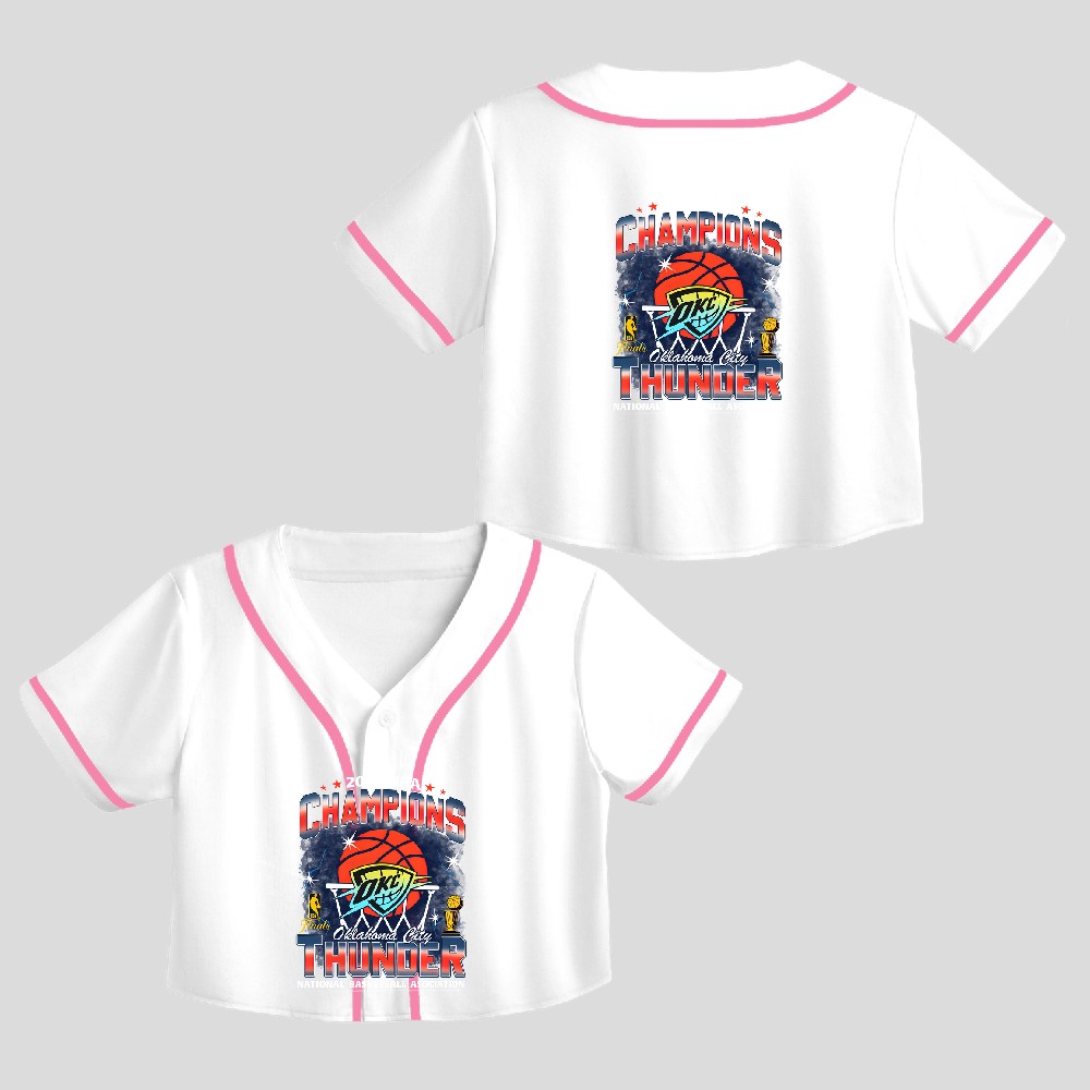 Okc Thunder Okc Basketball World Champs 2025 Champs Crop Top Baseball Jersey
