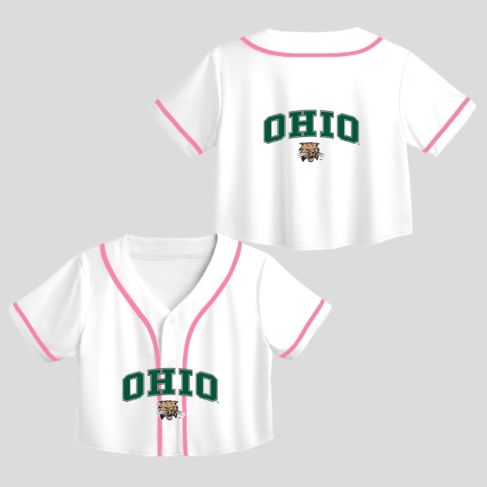 Ohio Bobcats Arch Over Officially Crop Top Baseball Jersey