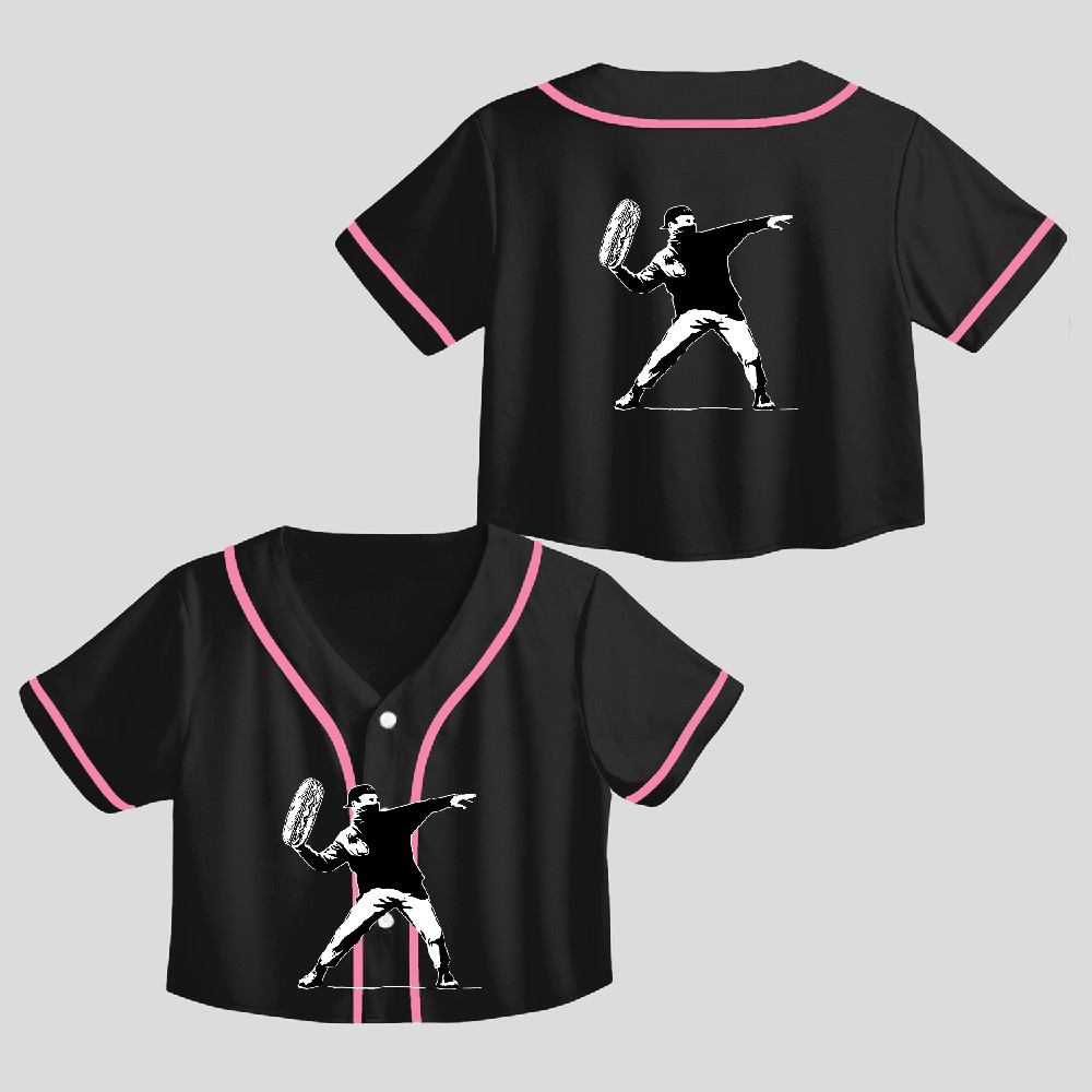 Banksy Inspired Sandwich Thrower Comfort Colors Streetwear Crop Top Baseball Jersey