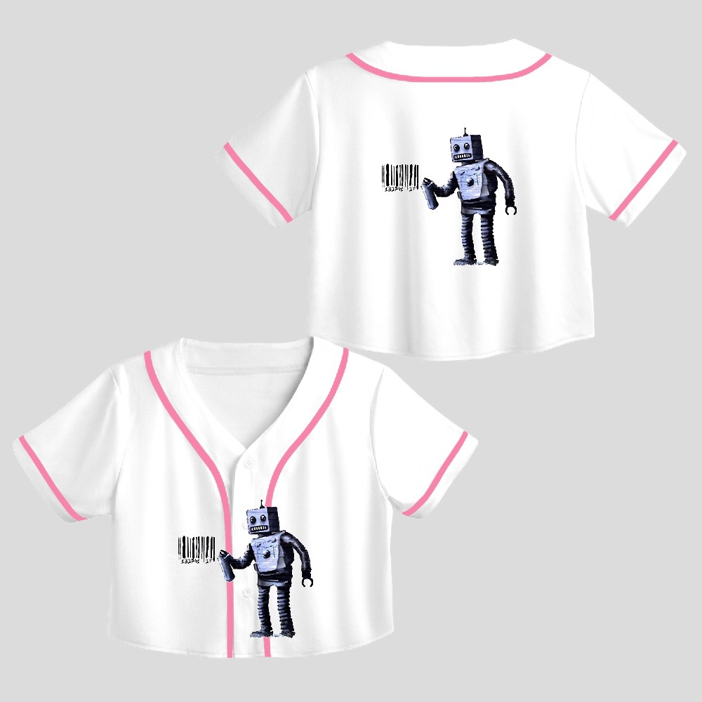 Banksy Robot Spray Painting Barcode Banksy Crop Top Baseball Jersey