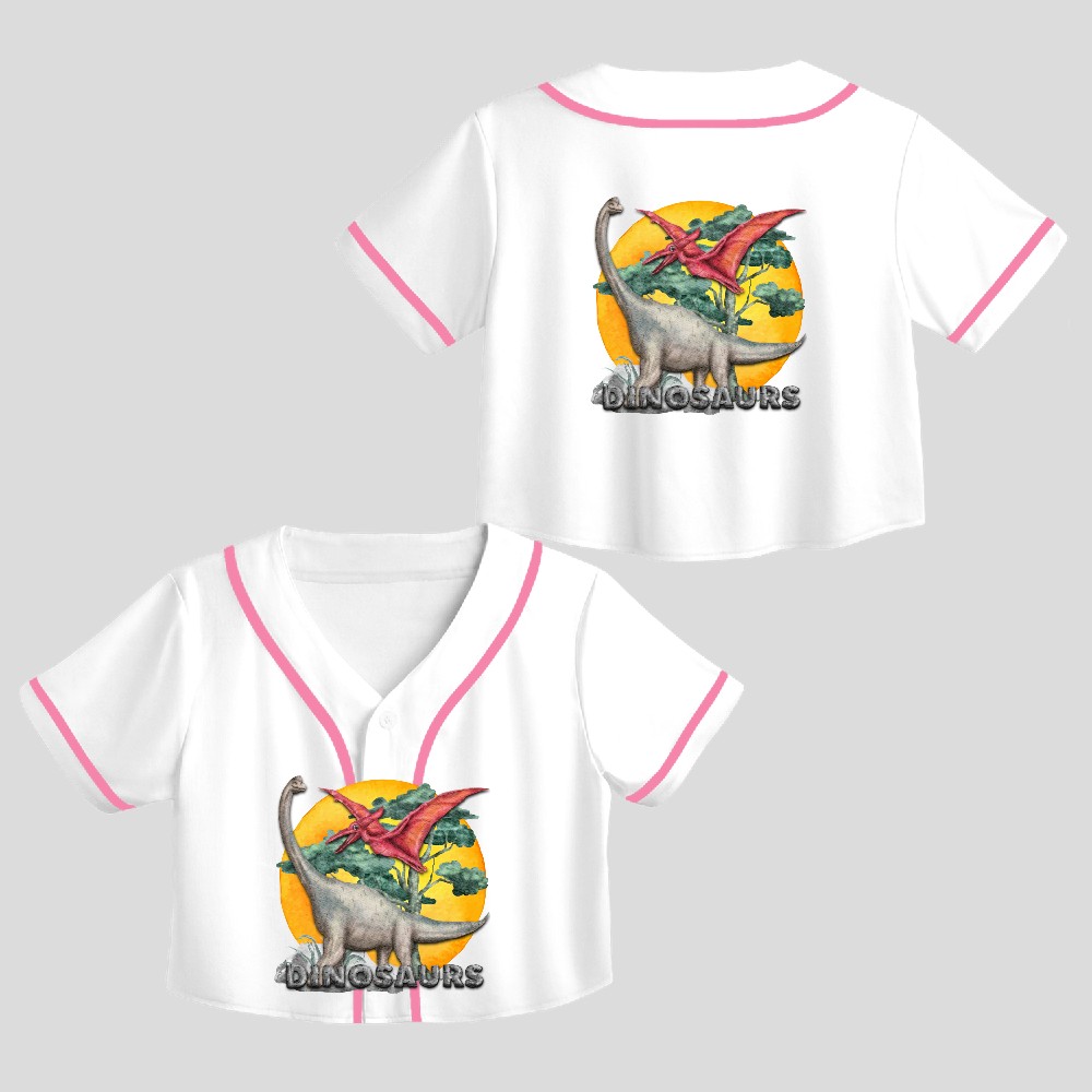 Watercolor Dinosaurs Dinosaur Lover Crop Top Baseball Jersey