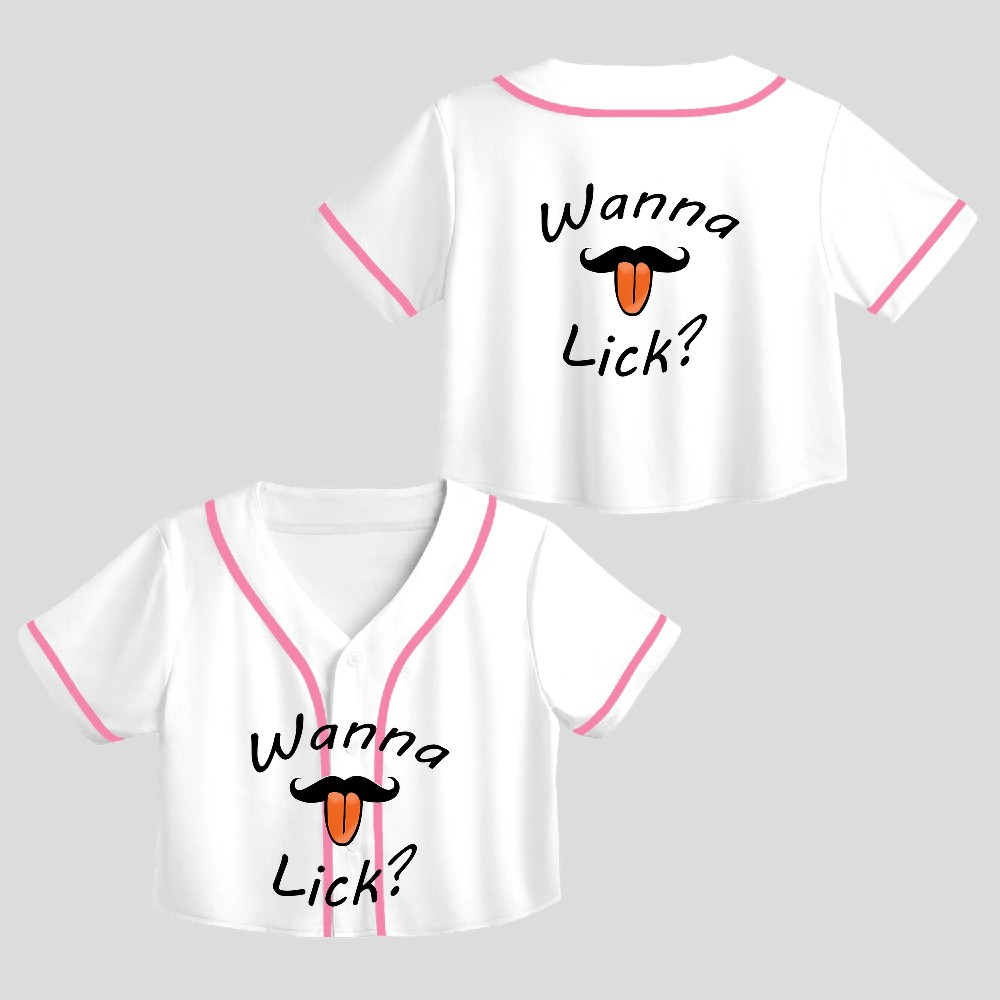 Wanna Lick Crop Top Baseball Jersey