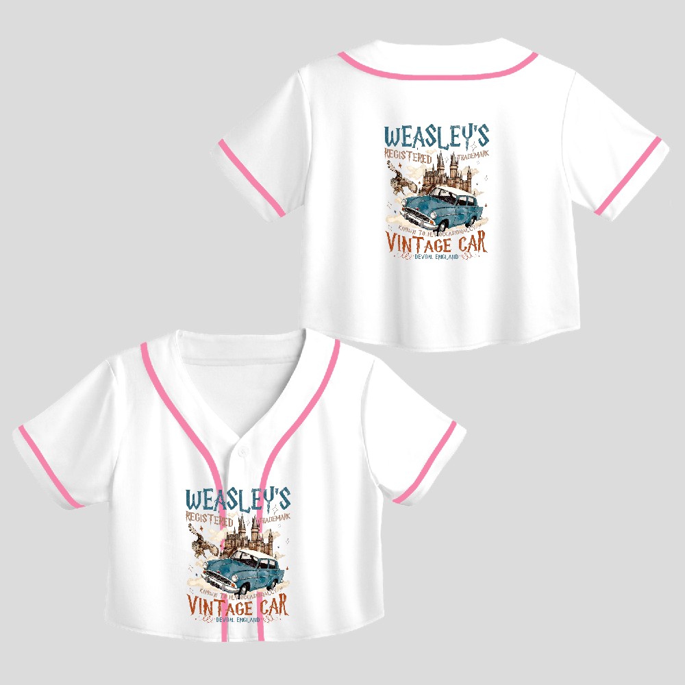 Wizard Flying Car Style Weasley Crop Top Baseball Jersey