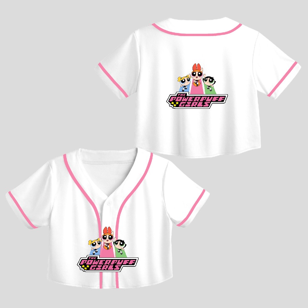 Blossom Buttercup Bubbles Power Puff Girl Power Girls Power Puff Girls Crop Top Baseball Jersey