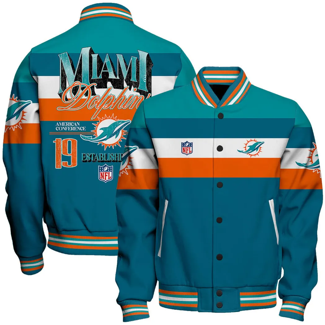 Dolphin NFL Crew Baseball Jacket Daily Sport Fan Jacket NFL