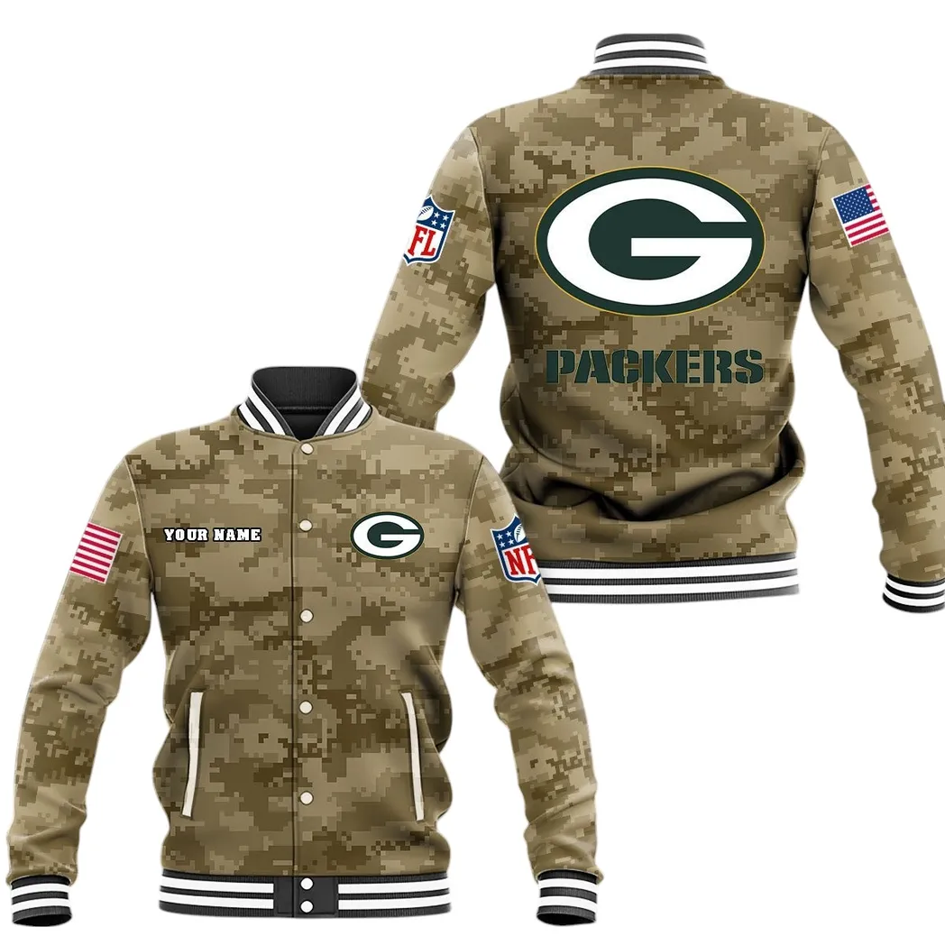 Field Fans Green Bay Packers Baseball Jacket Everyday Varsity Fan Gear DNFL Brown