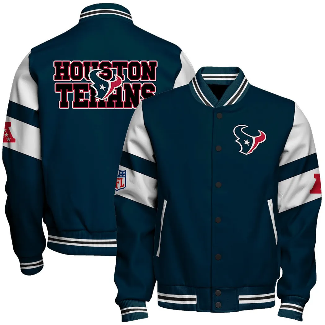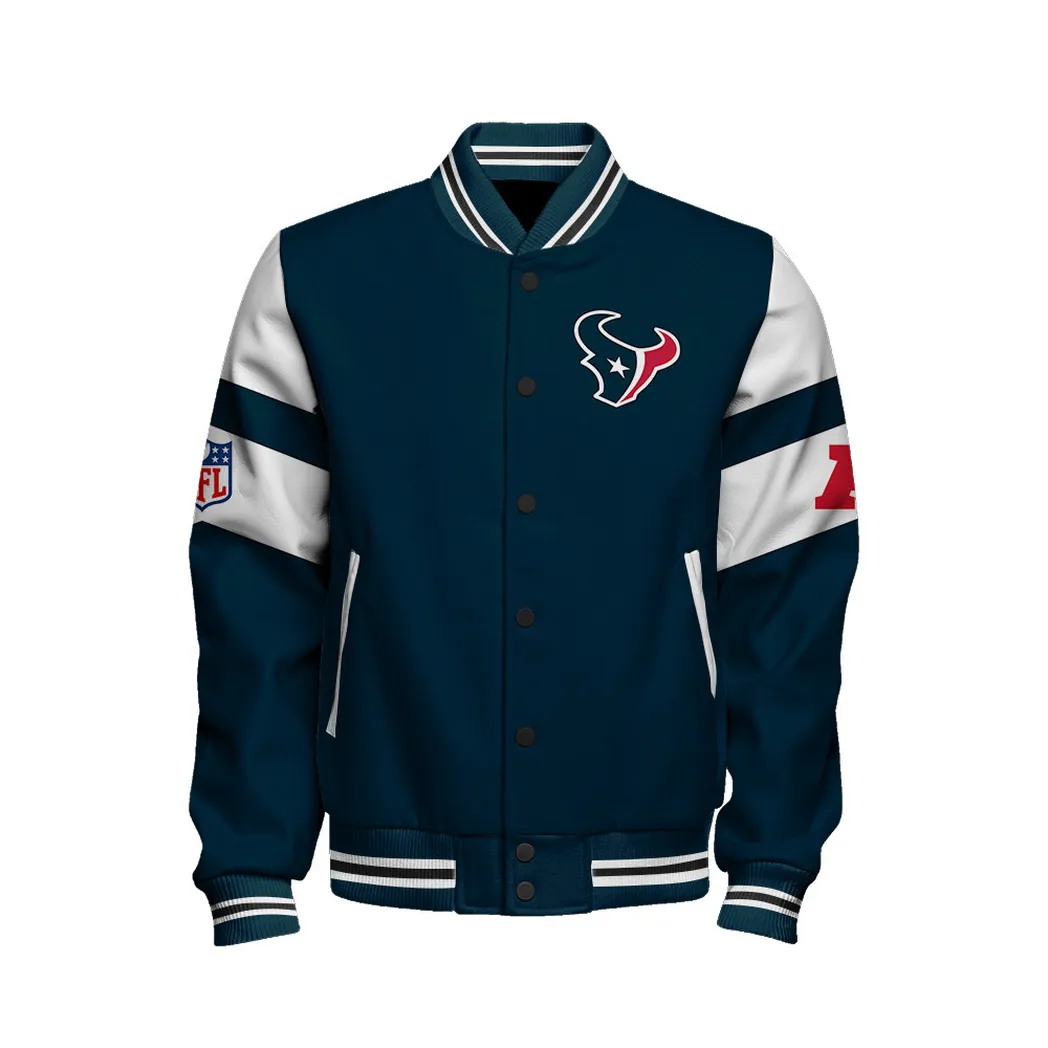 Houston Texans Blue Claws Baseball Jacket Game-Day Varsity Outerwear NFL