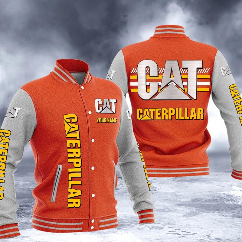 Industrial Machinery Merch Caterpillar Personalized Baseball Jacket For Fans Orange