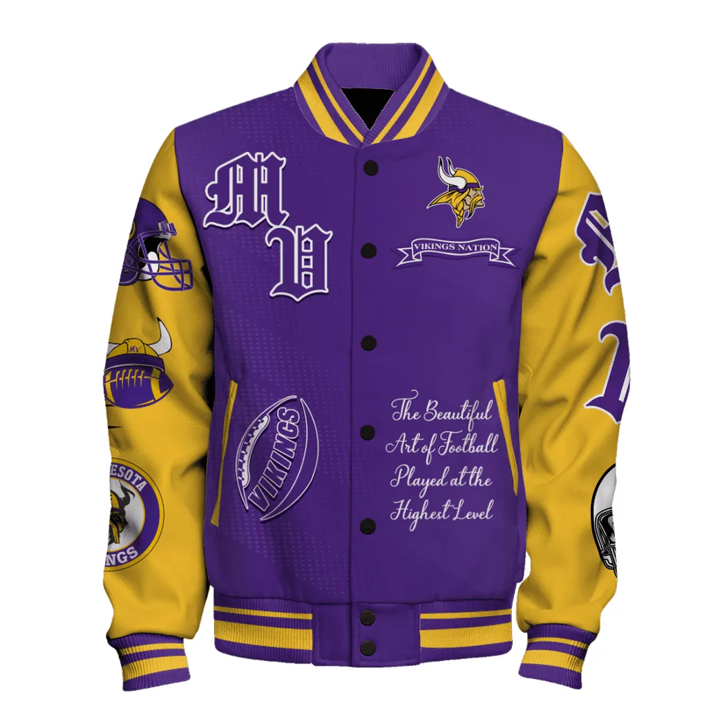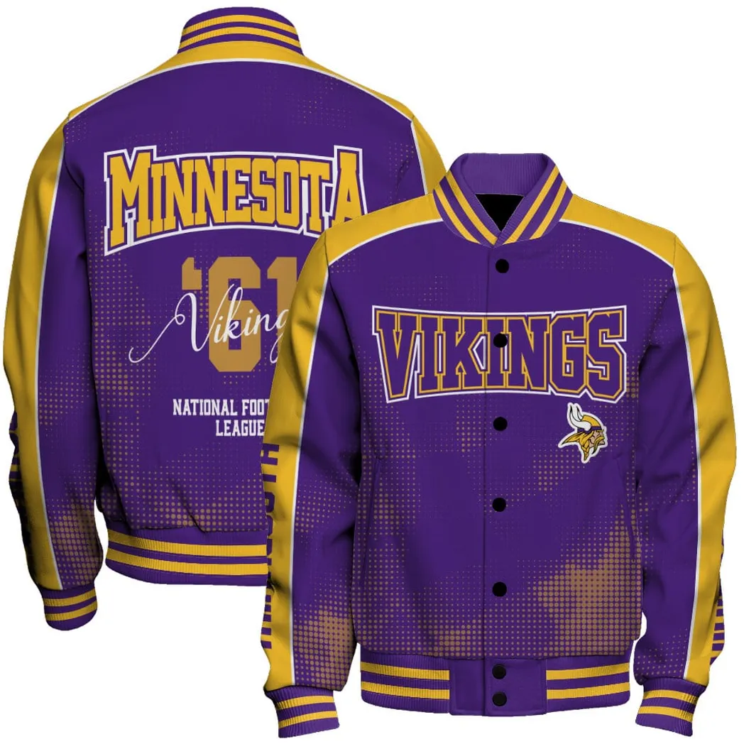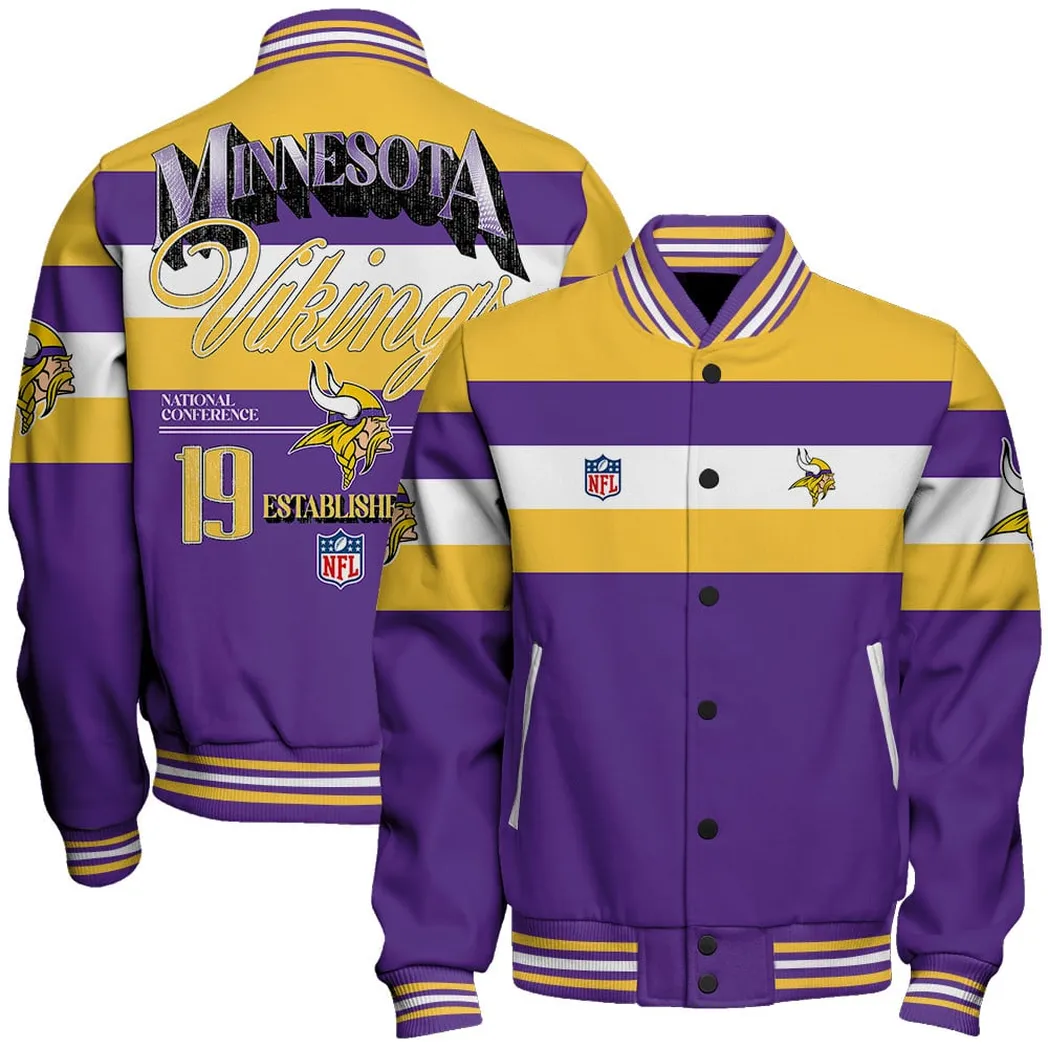 Minnesota Vikings Victory Halo NFLBaseball Jacket Performance Fan Varsity Jacket NFL