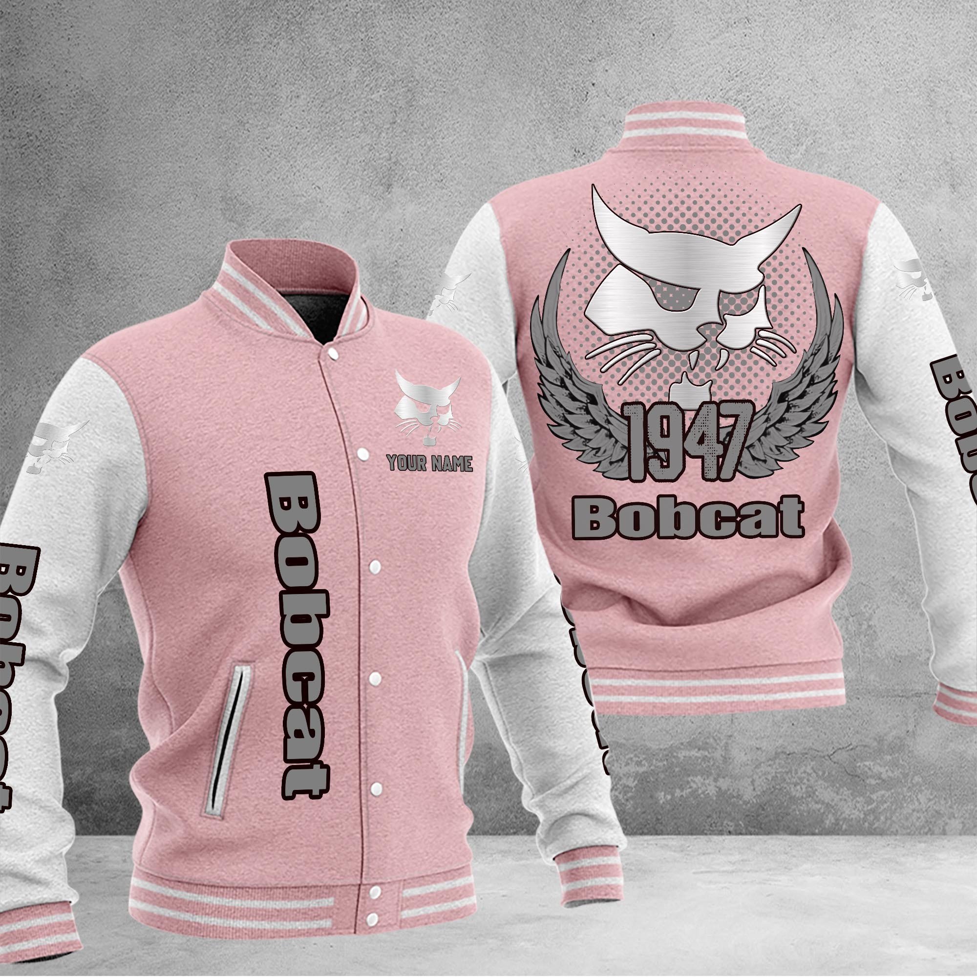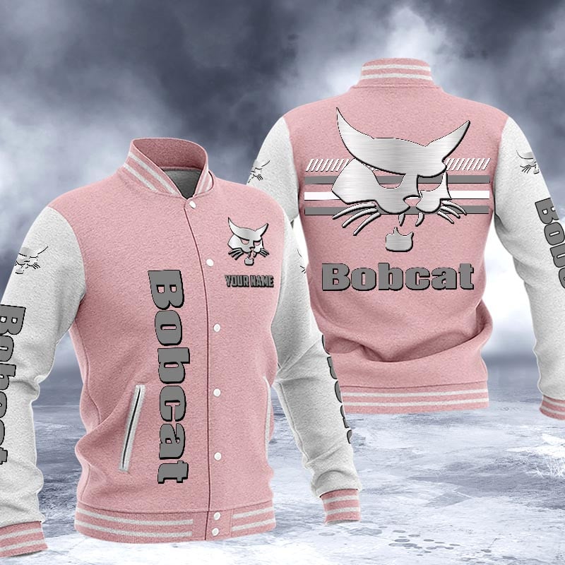 Agricultural Machinery Logo Bobcat Personalized Baseball Jacket For Fans Pink