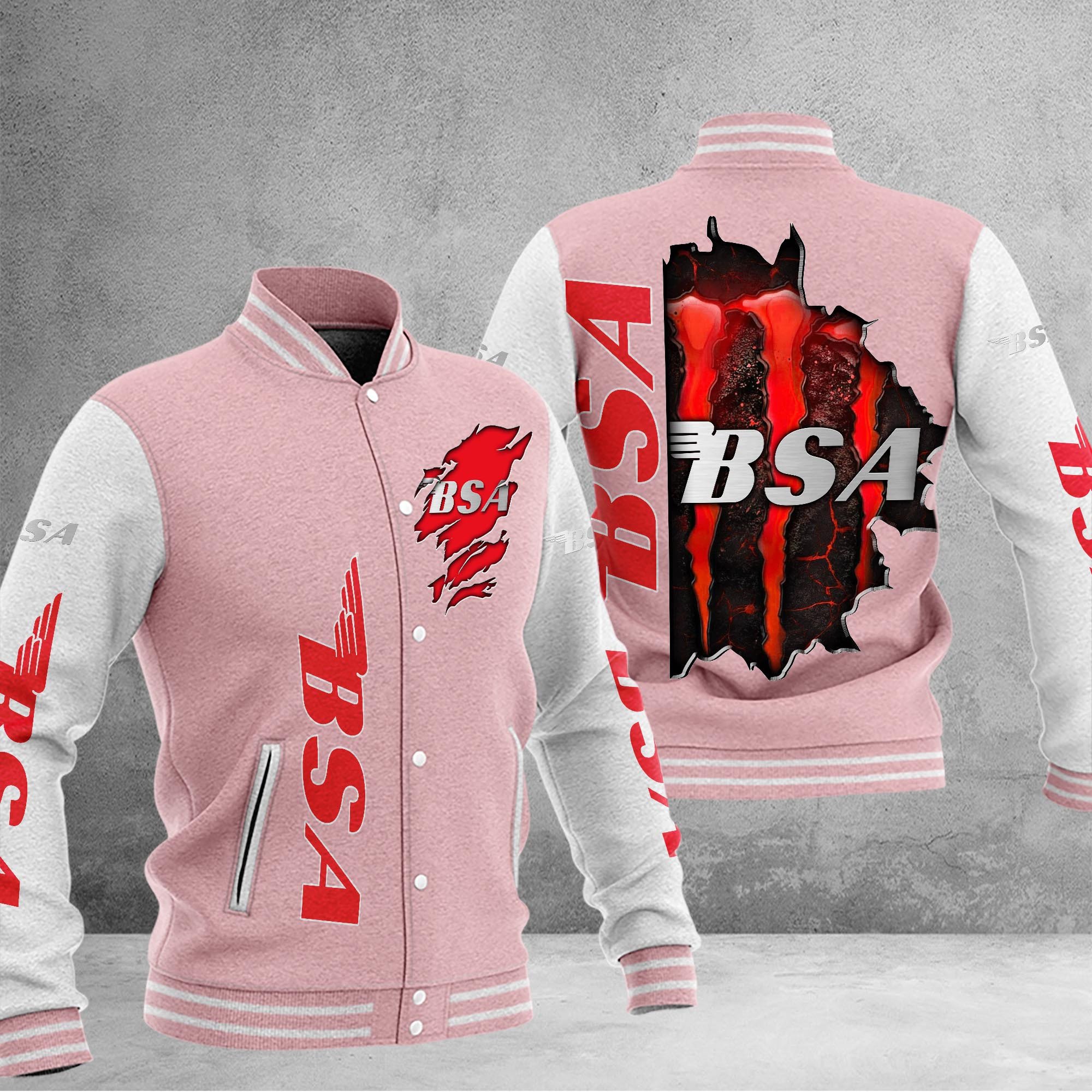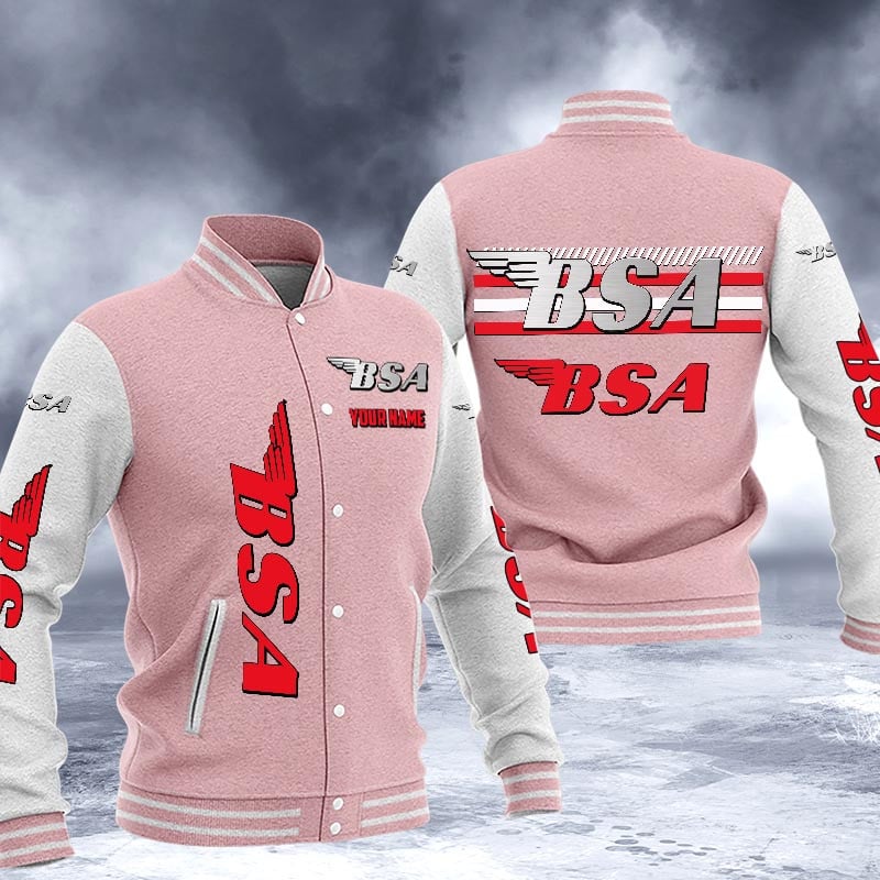 Motorcycles BSA Car Custom Name Baseball Jacket For Fans Pink