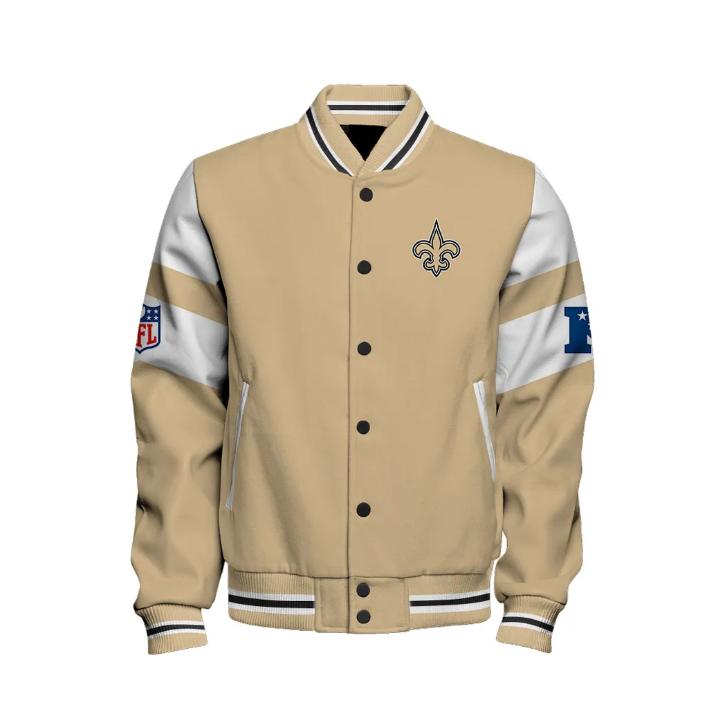 New Orleans Saints Football Gold Crew Men Baseball Jacket Classic Baseball Fan Jacket NFL