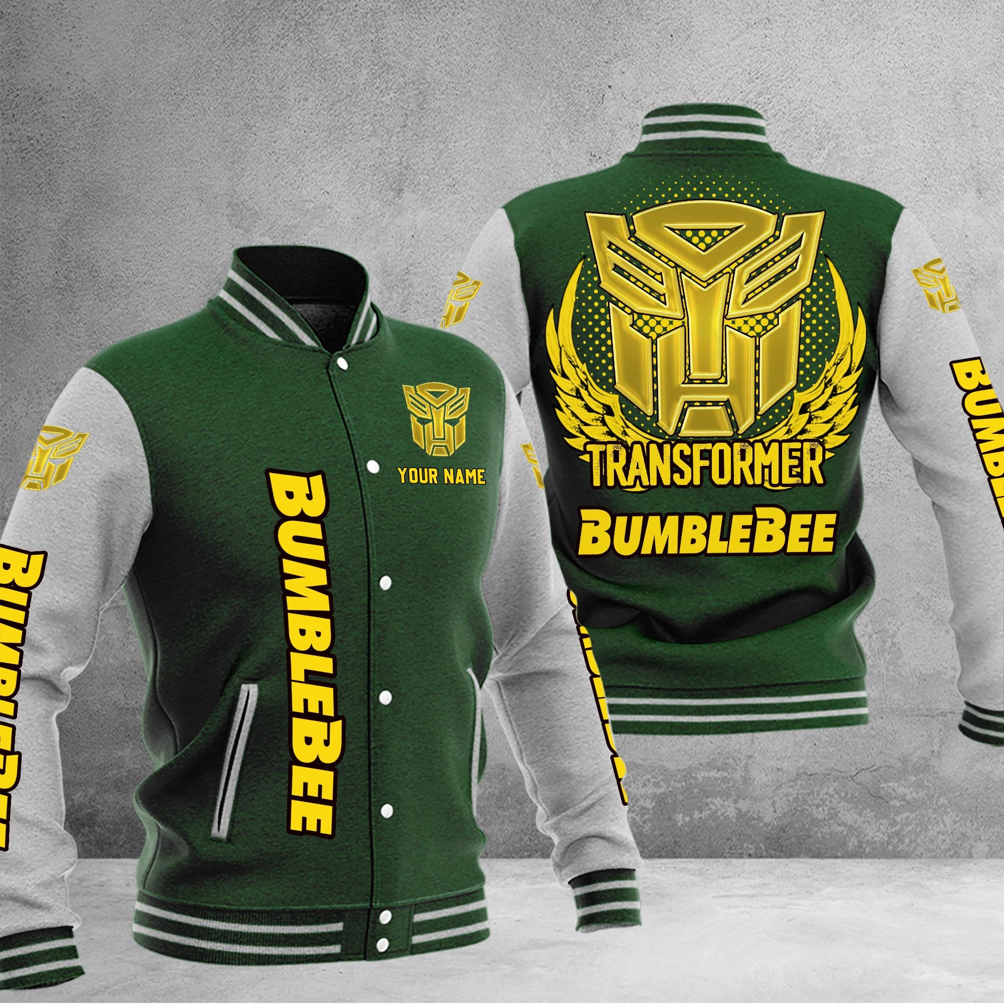 Vehicle Accessories Official Bumblebee Car Custom Name Baseball Jacket For Fans Green