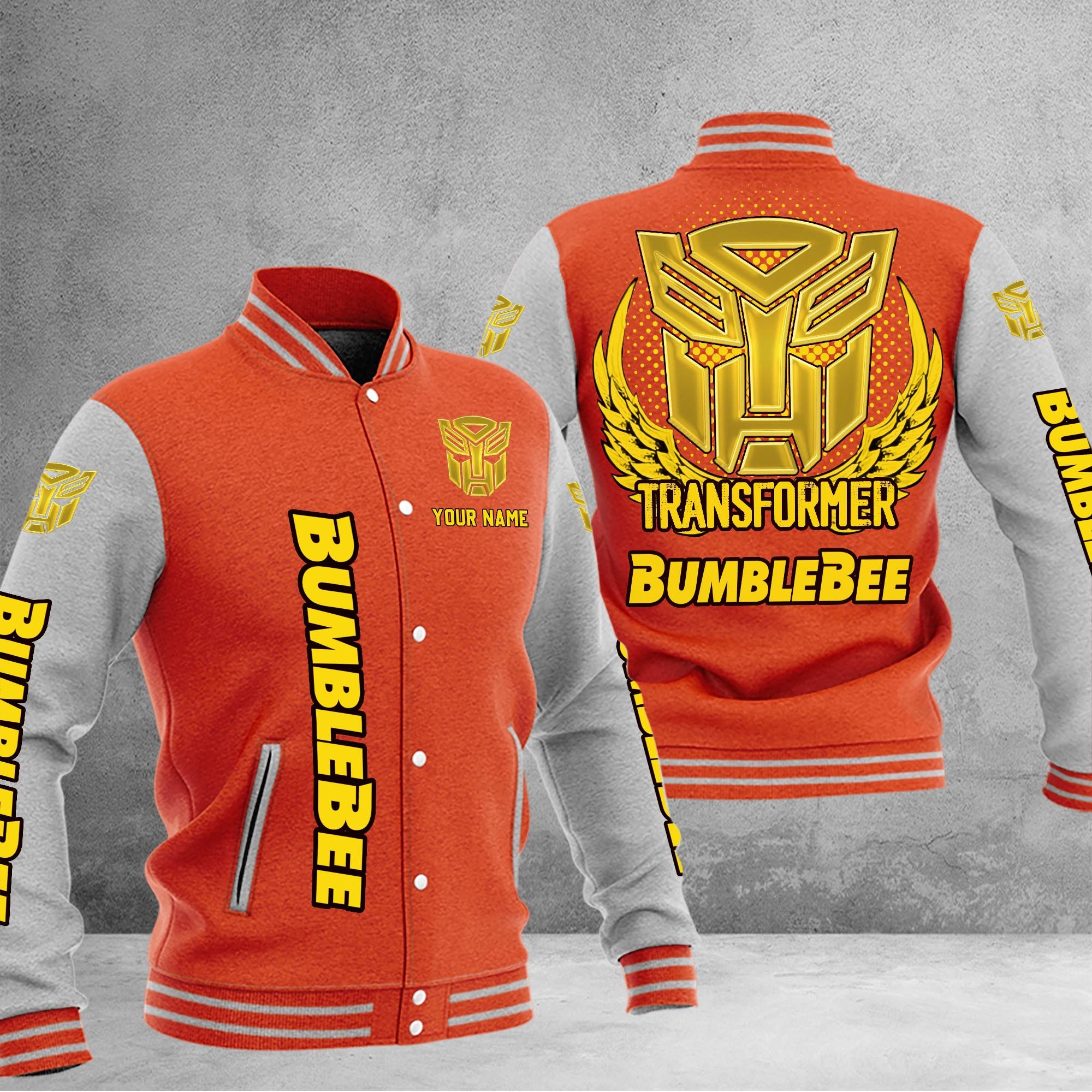 Vehicle Accessories Official Bumblebee Car Custom Name Baseball Jacket For Fans Orange