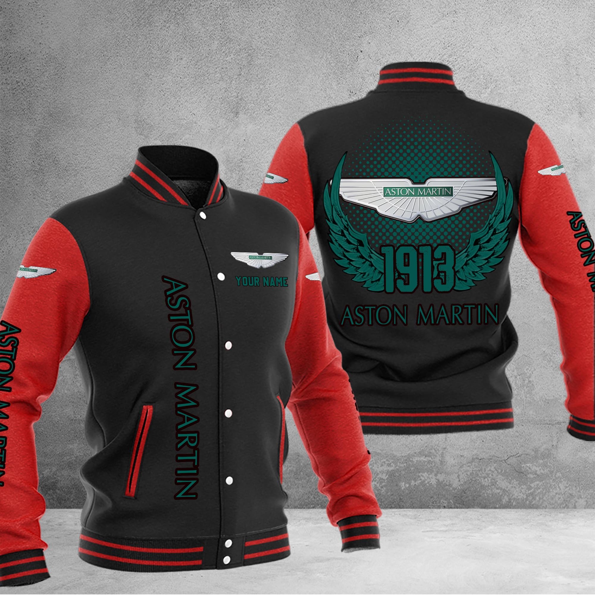 Aston-Martin Car Custom Name Baseball Jacket For Fans Red Black