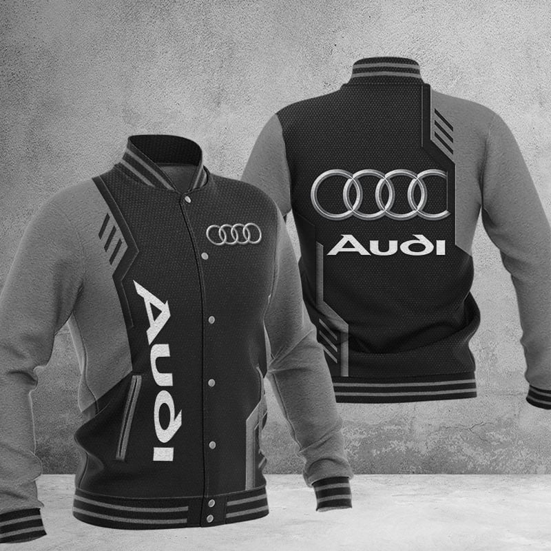 Audi Car Custom Name Baseball Jacket For Fans Grey