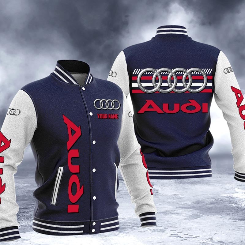 Audi Car Custom Name Baseball Jacket For Fans Navy