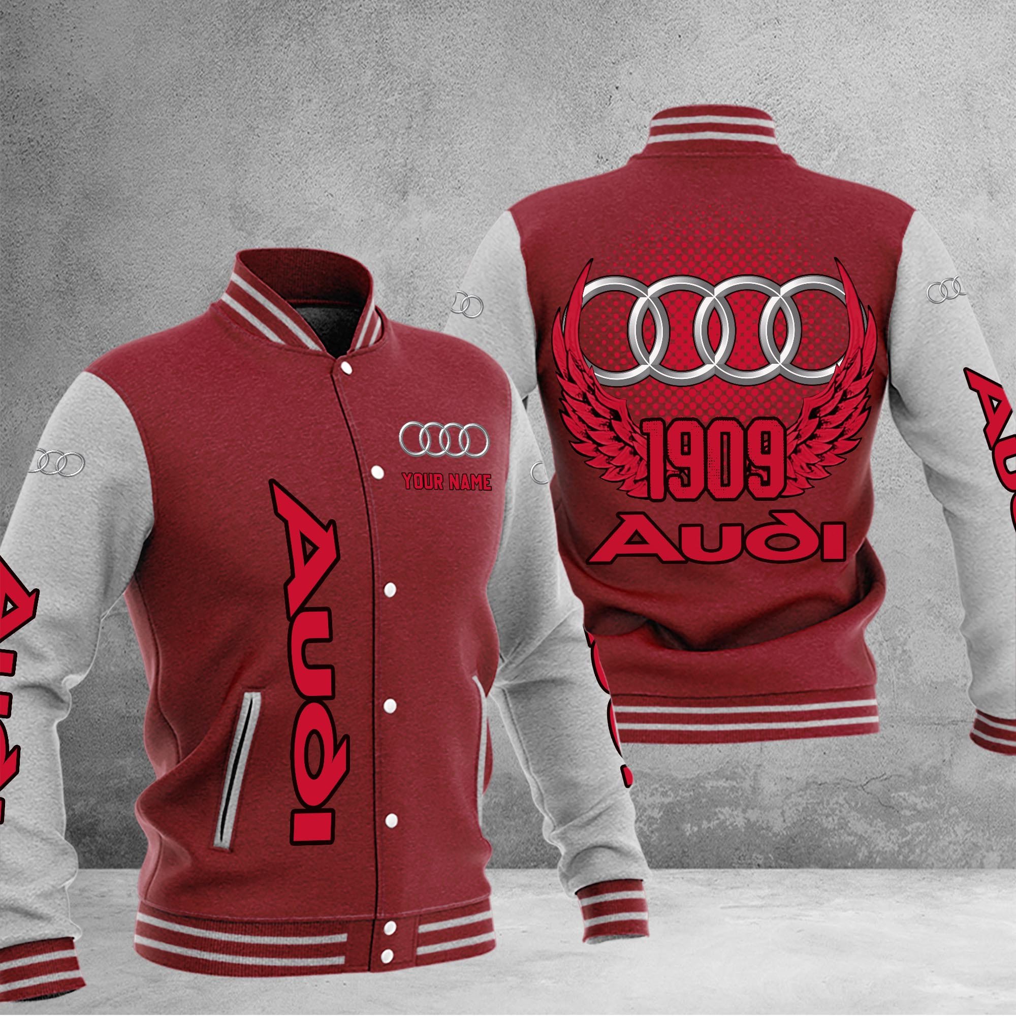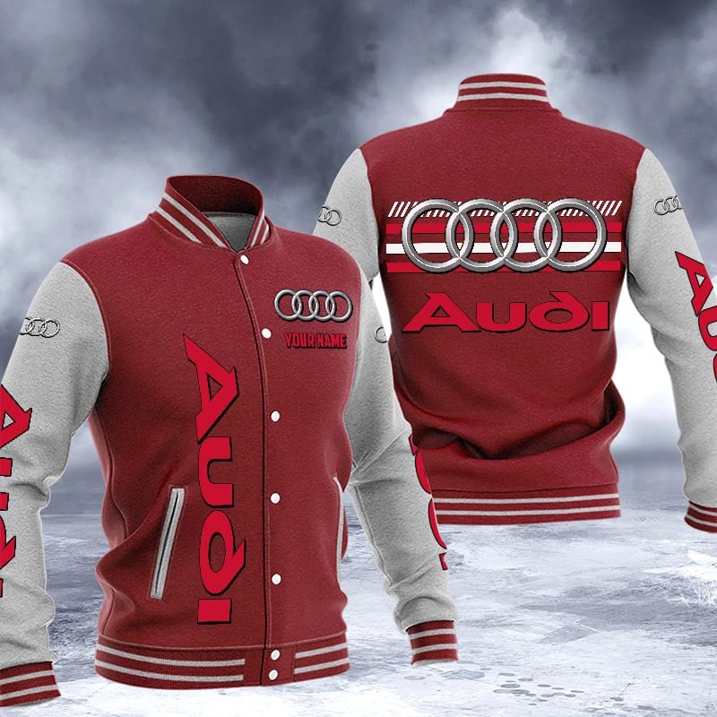 Audi Car Custom Name Baseball Jacket For Fans Dark Red