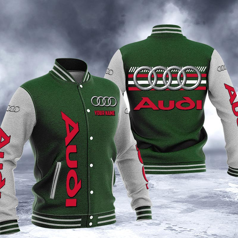 Audi Car Custom Name Baseball Jacket For Fans Green