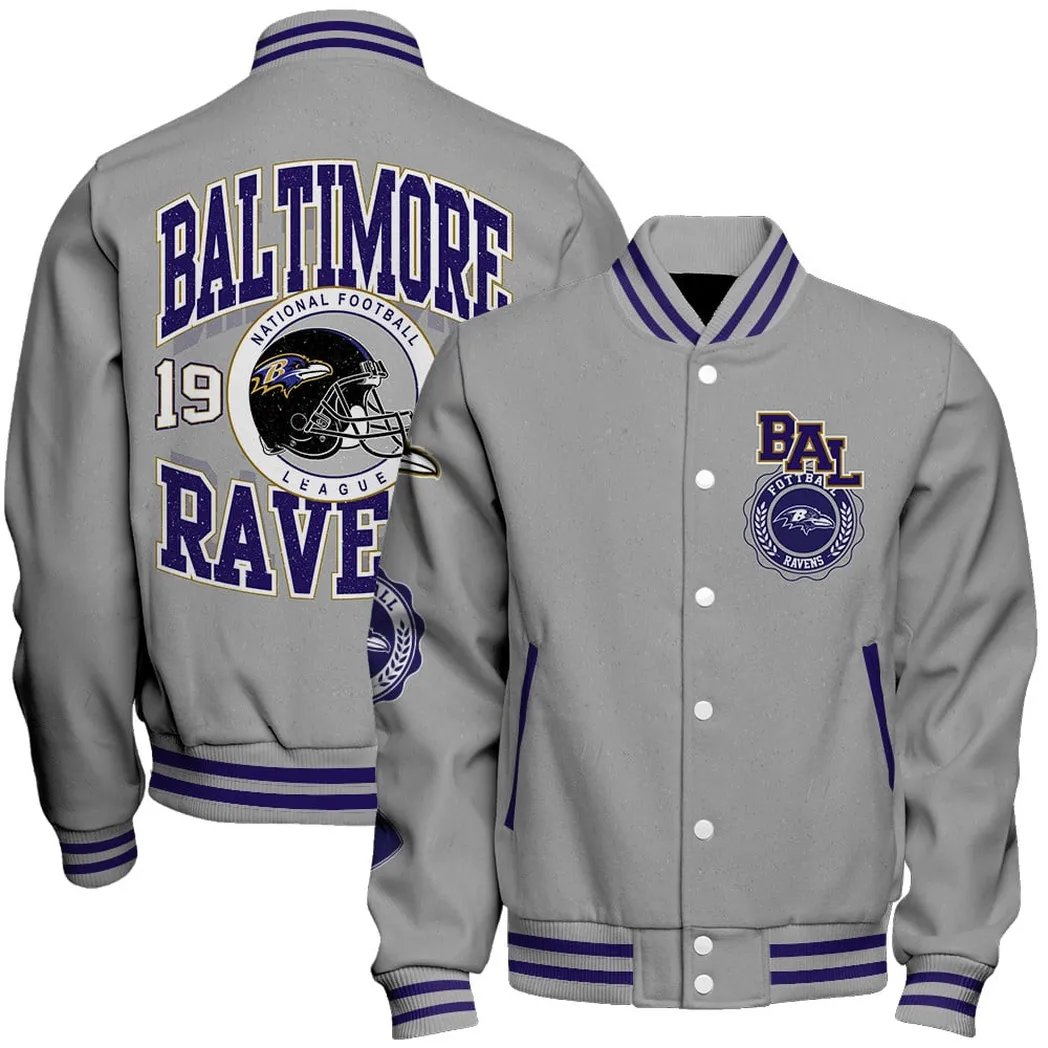 Baltimore Football Purple Crew NFL Baseball Jacket Heritage Baseball Fan Jacket NFL