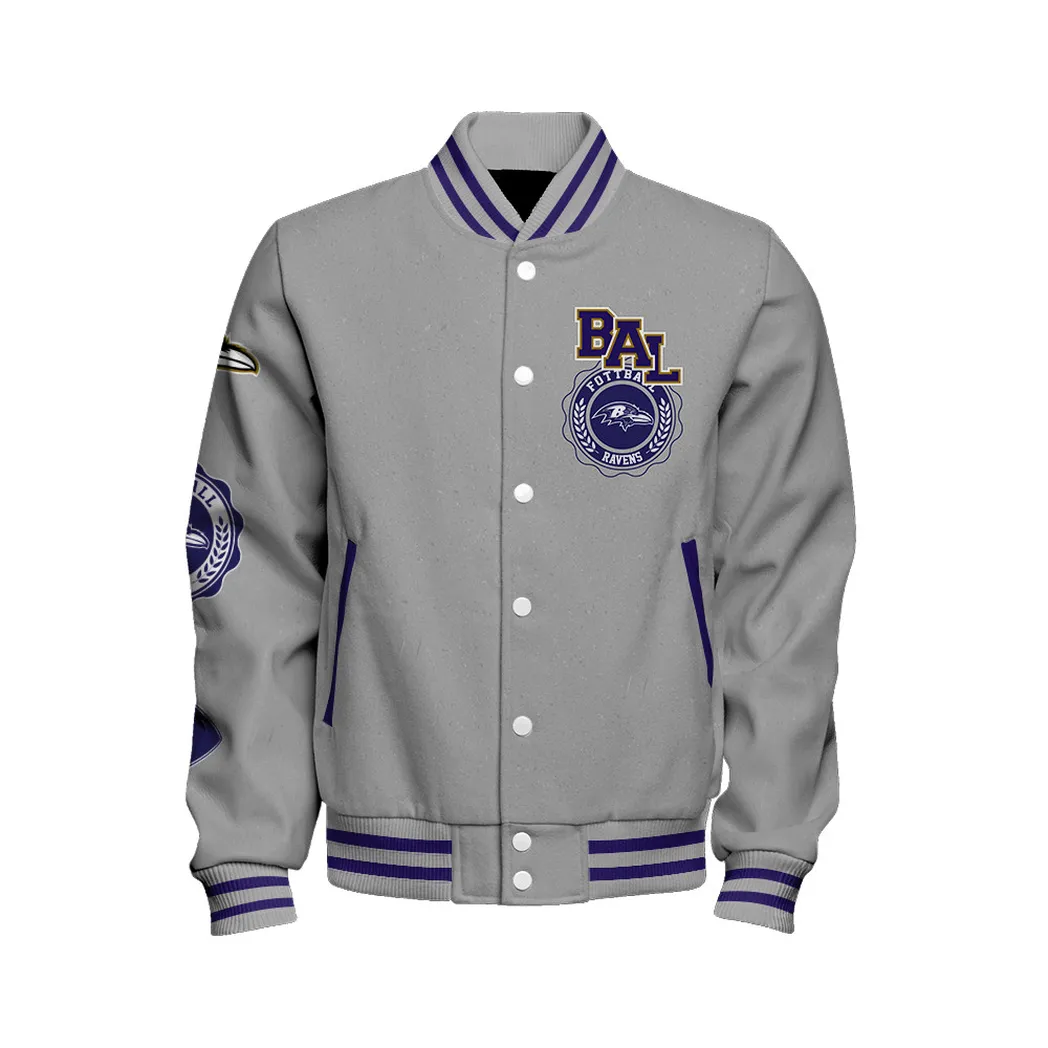 Baltimore Ravens Charm City Squad NFL Bomber Baseball Jacket Casual Sport Fan Outerwear NFL