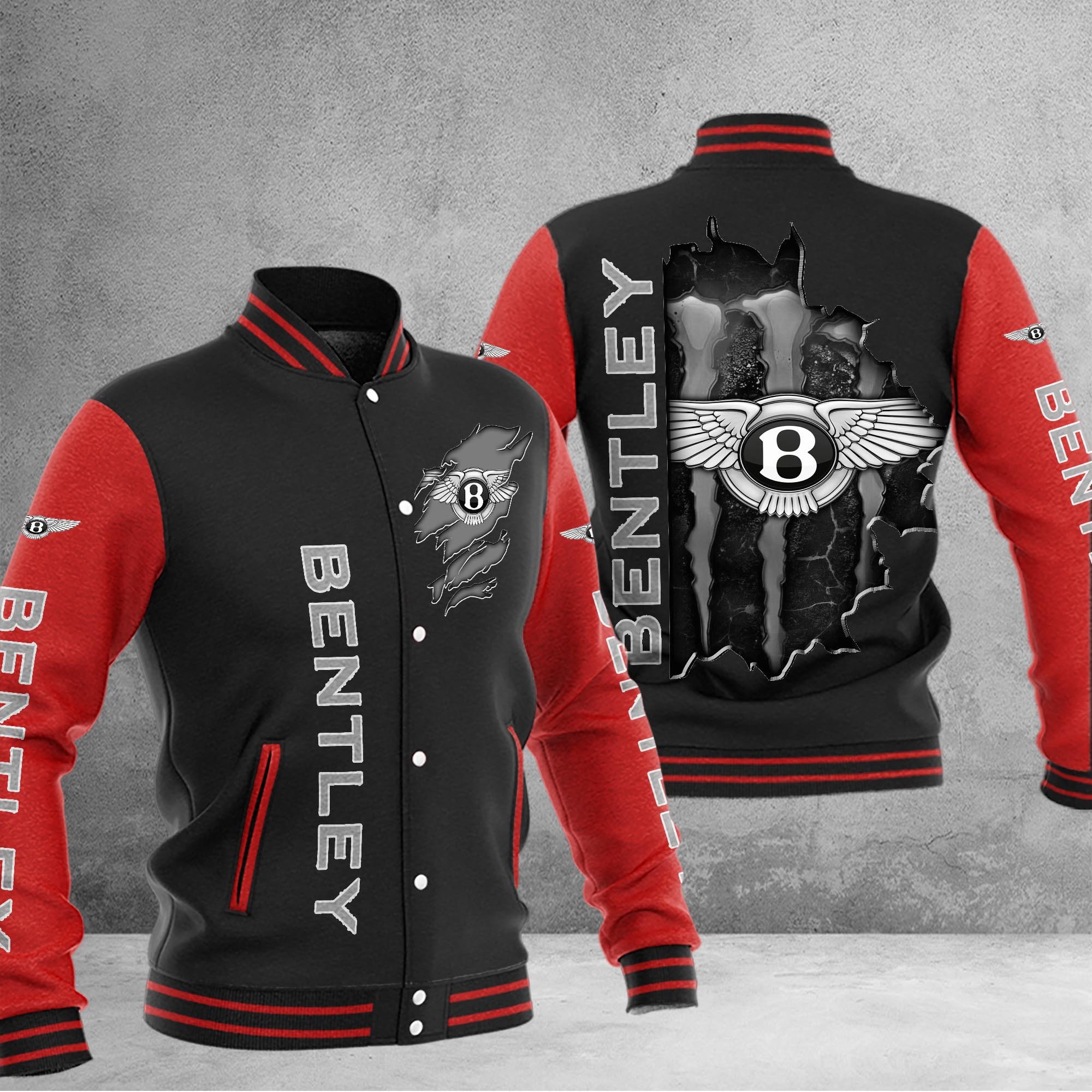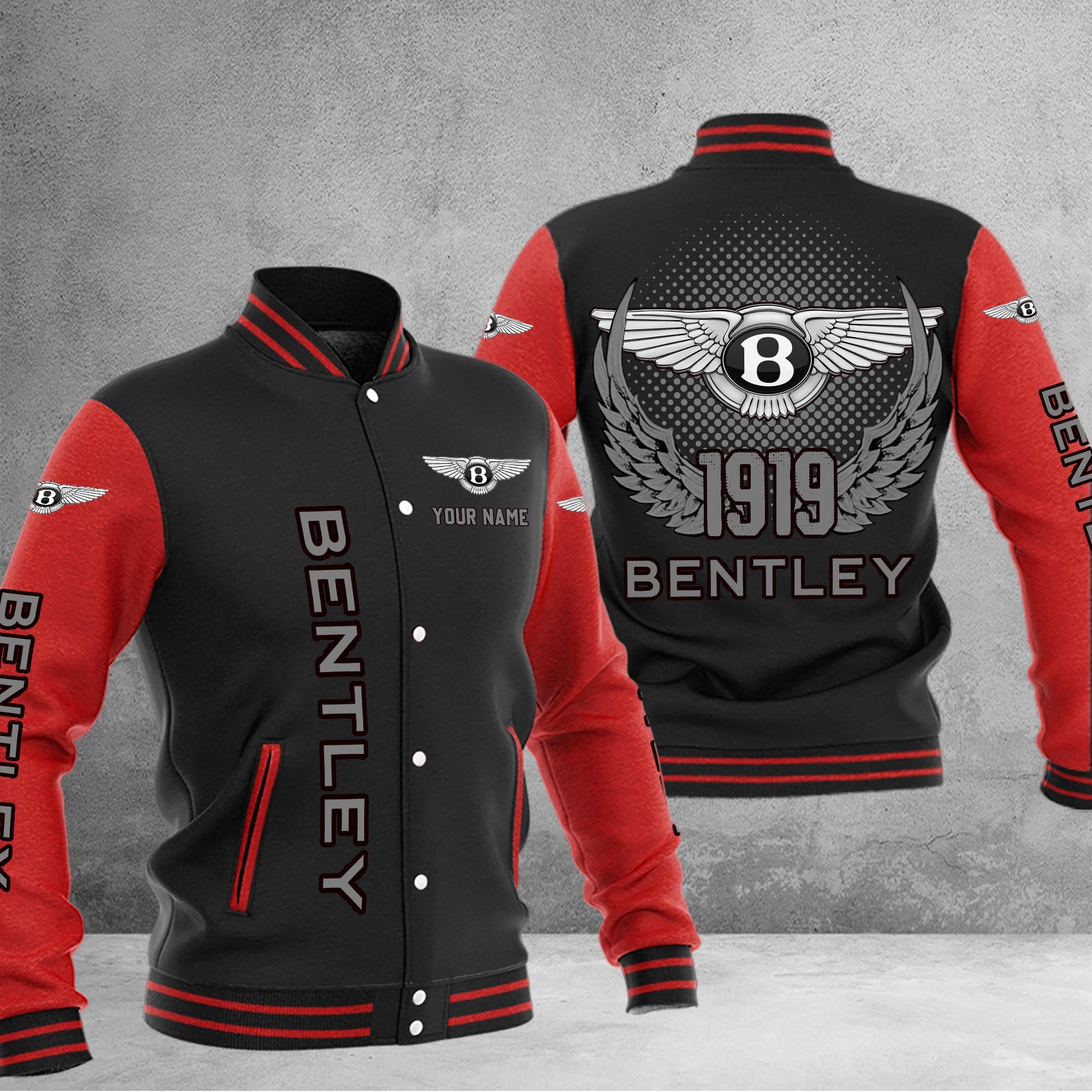 Bentley Car Custom Name Baseball Jacket For Fans Red Black