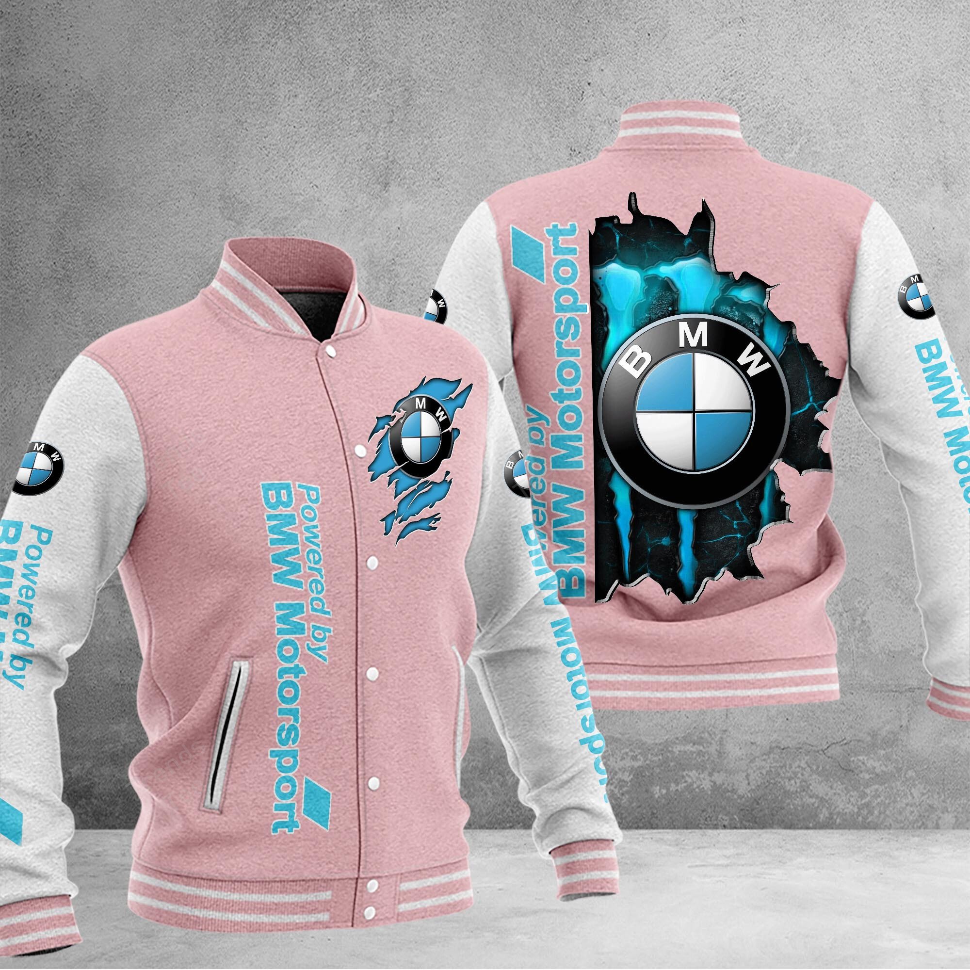 BMW Car Custom Name Baseball Jacket For Fans Pink