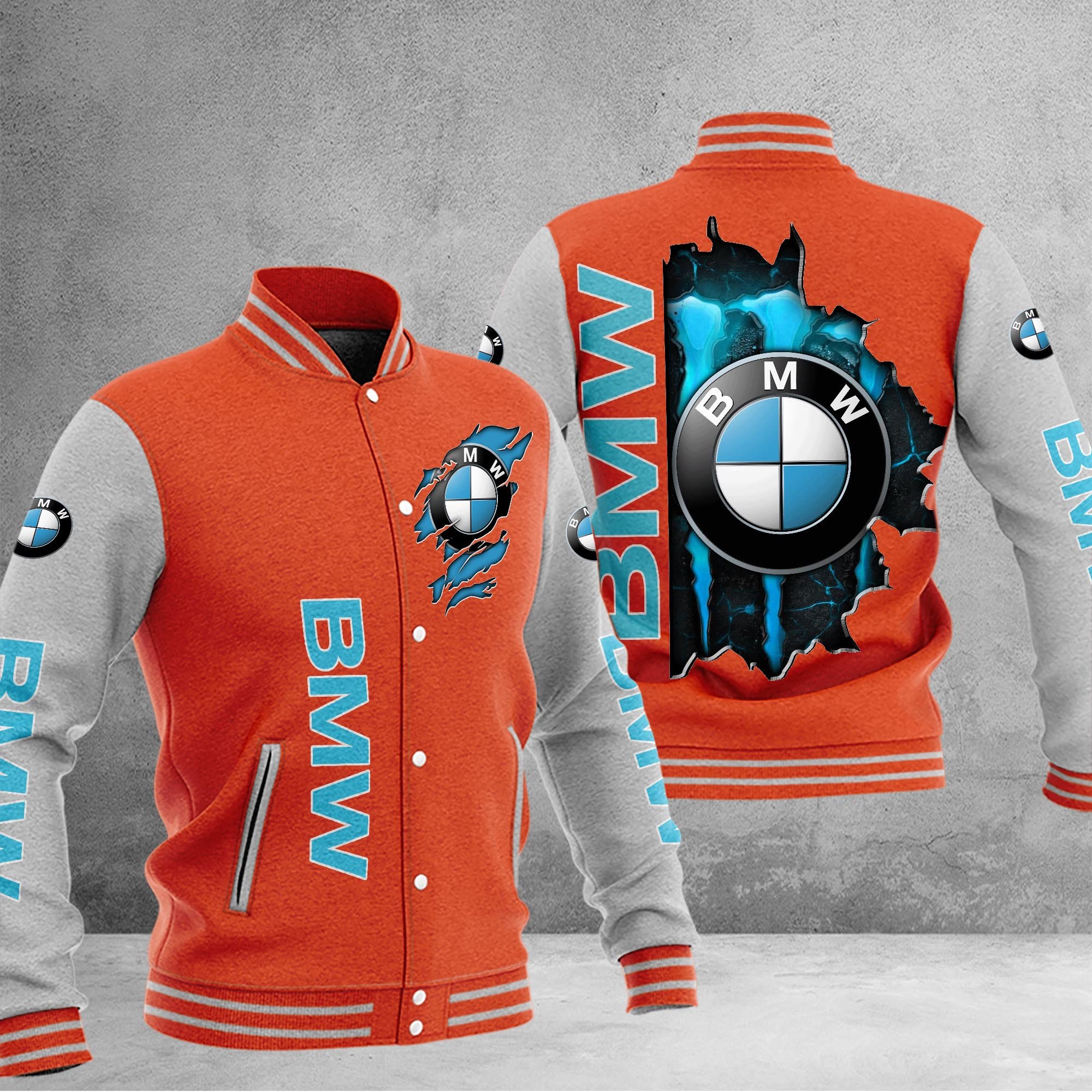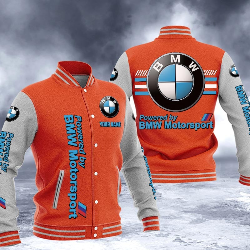BMW Car Custom Name Baseball Jacket For Fans Orange