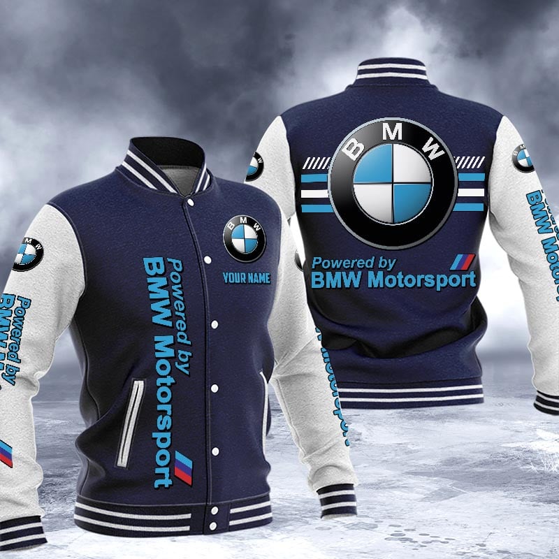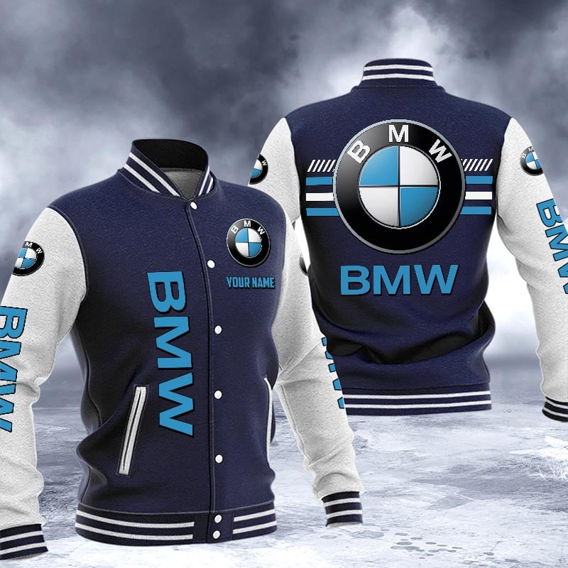 BMW Car Custom Name Baseball Jacket For Fans Navy