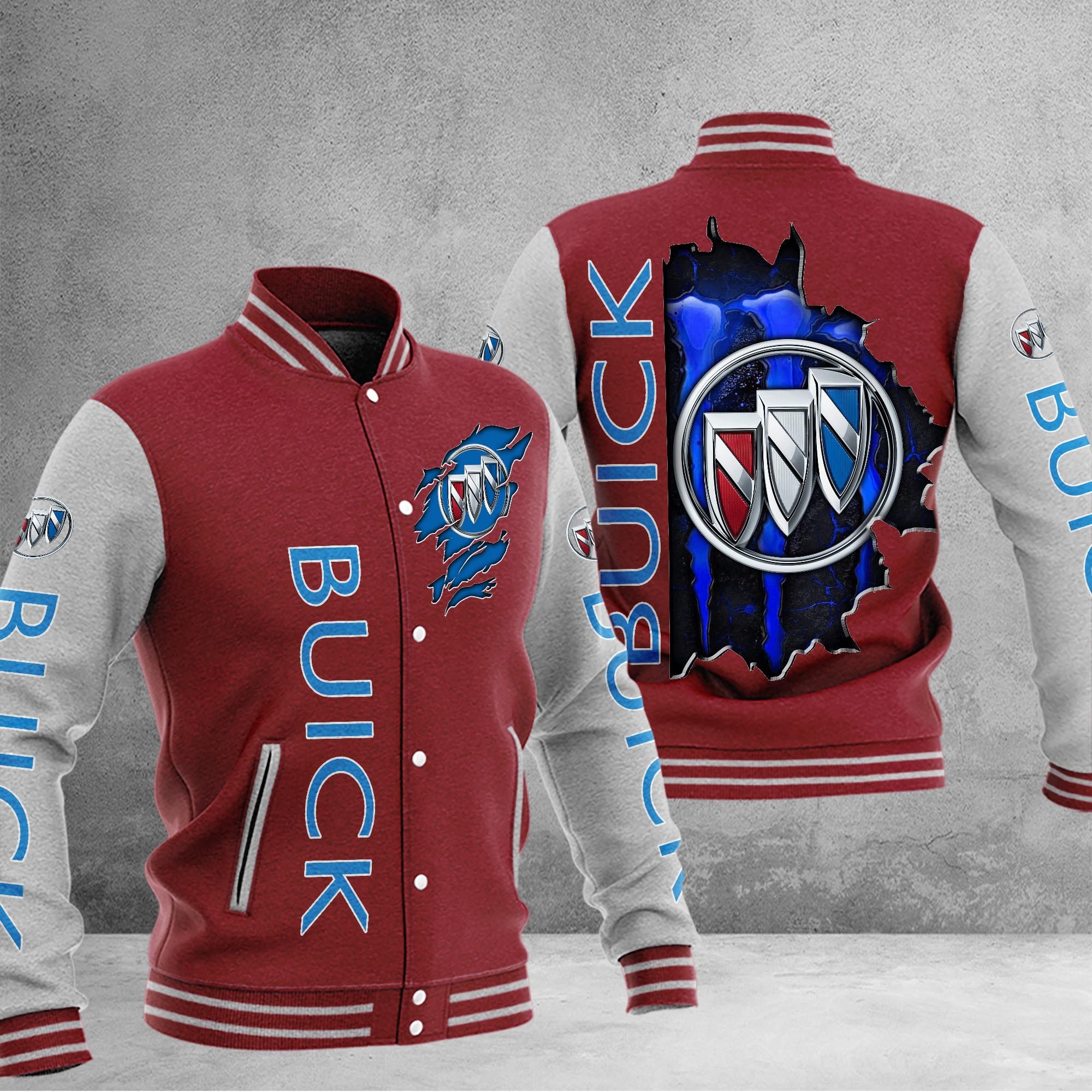 Buick Car Custom Name Baseball Jacket For Fans Dark Red