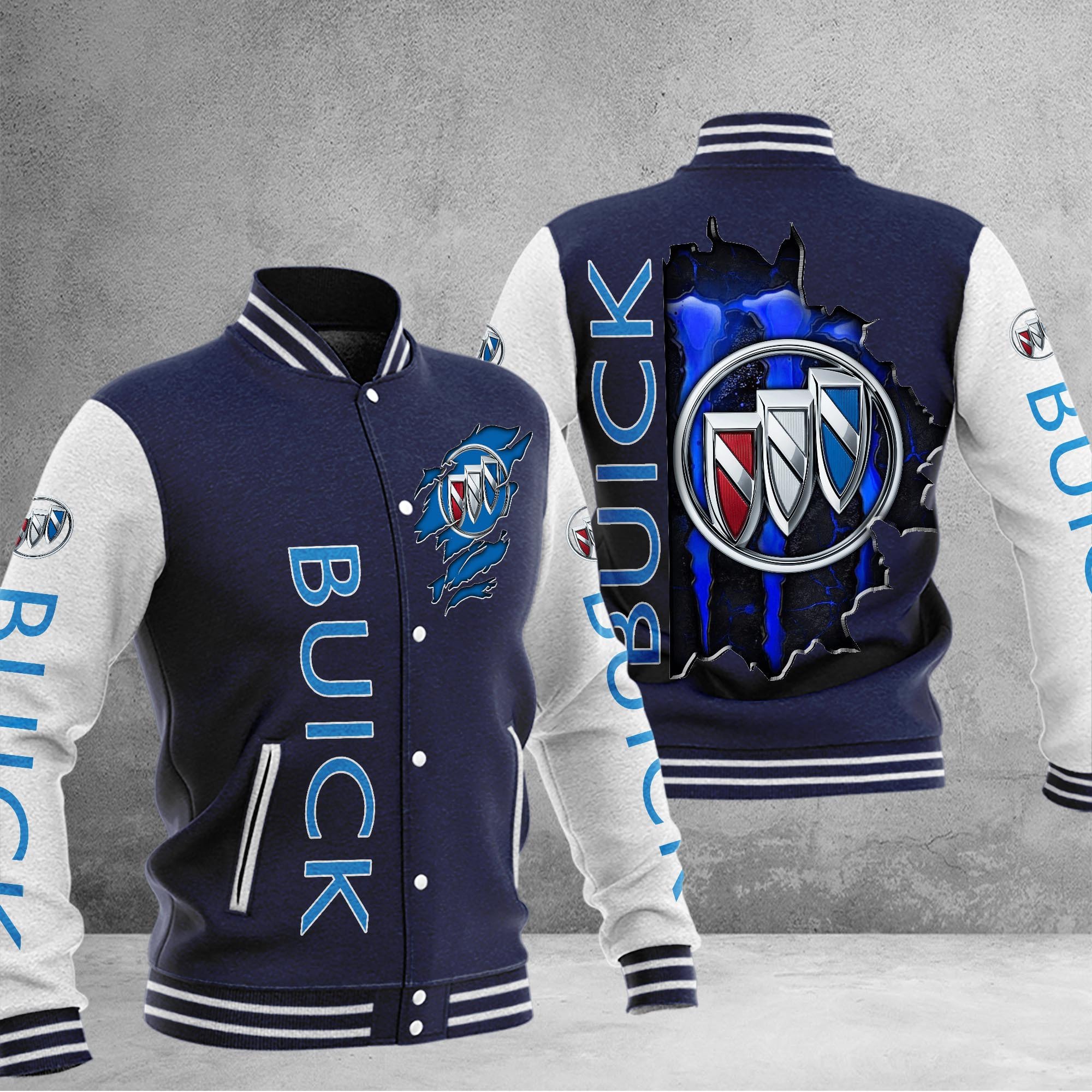 Buick Car Custom Name Baseball Jacket For Fans Navy