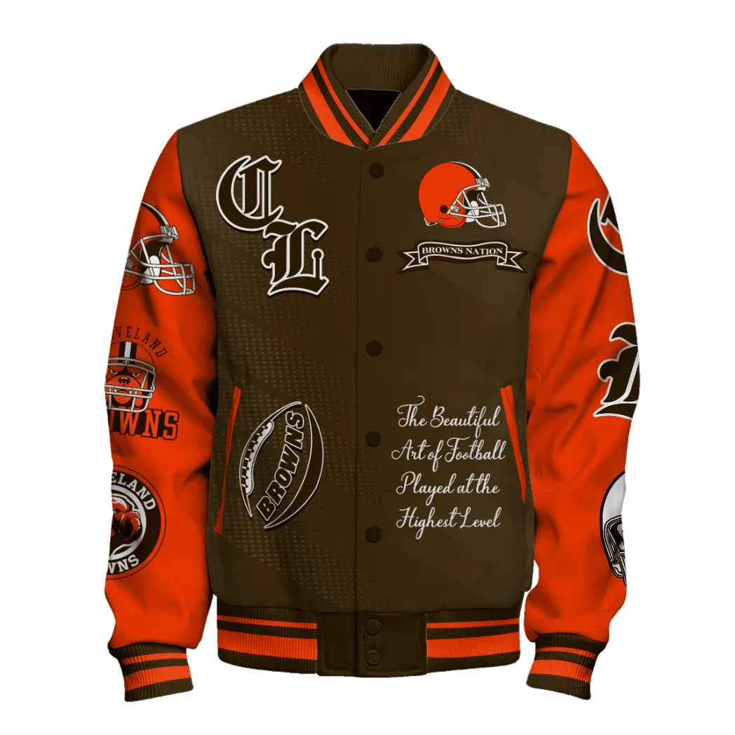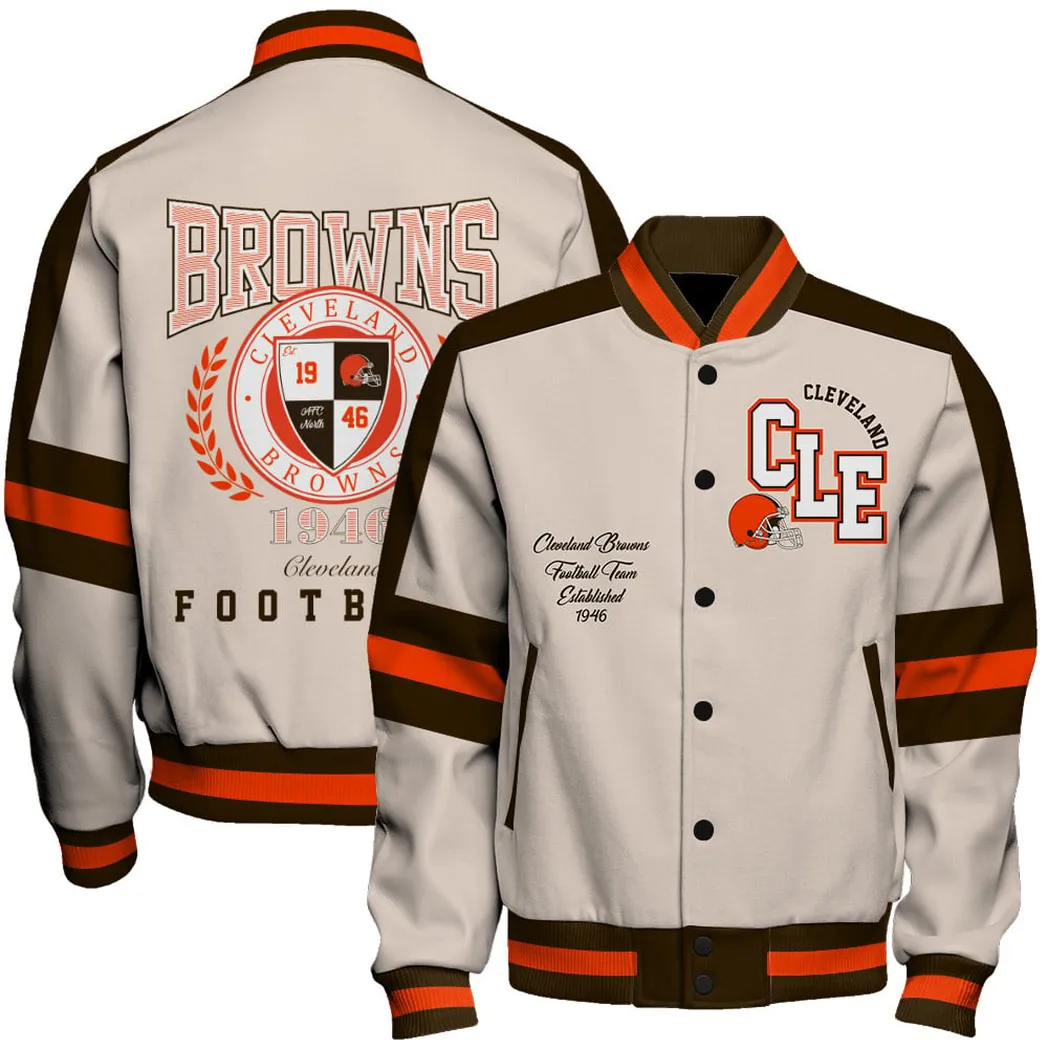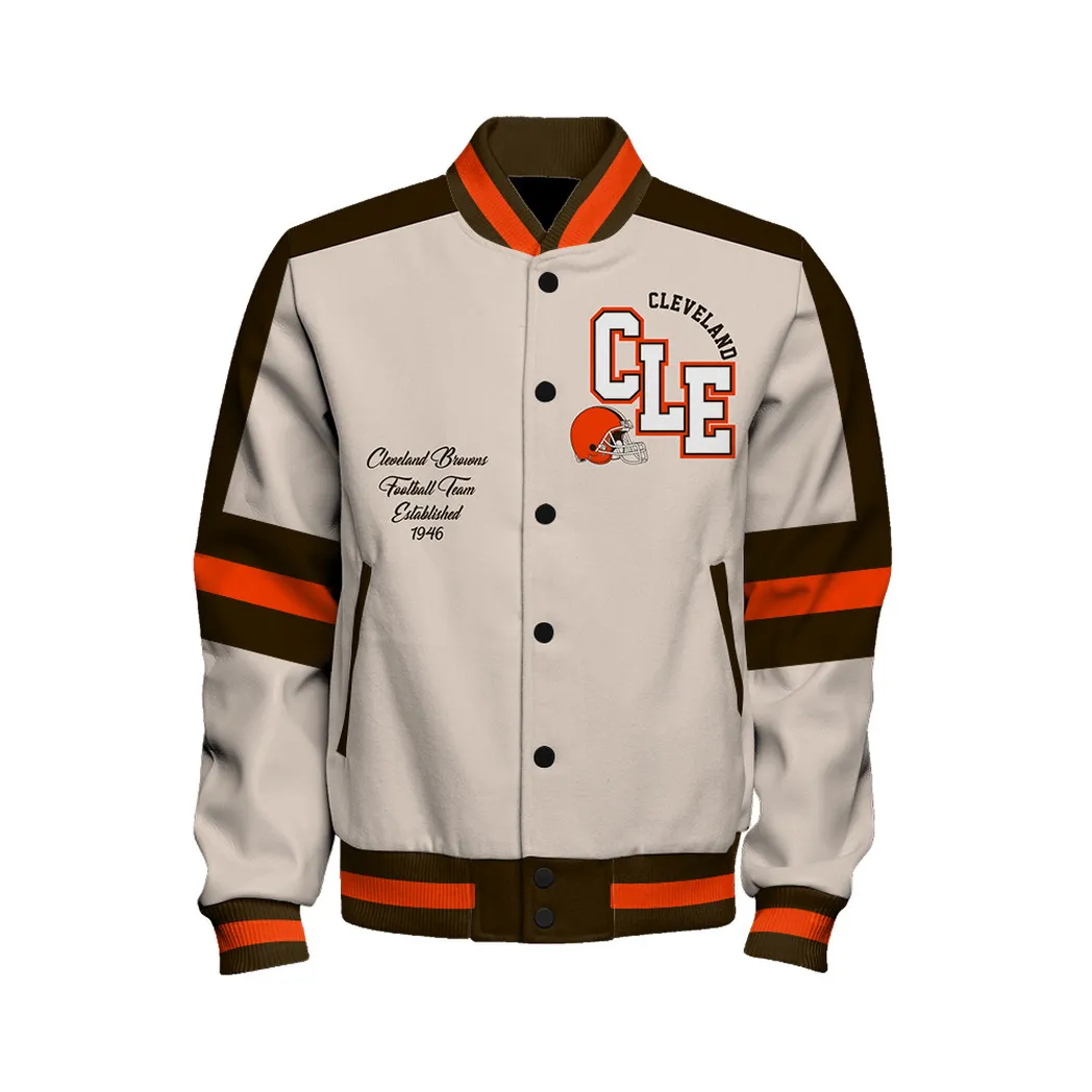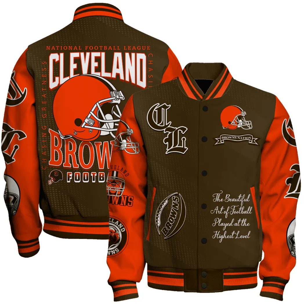 Cleveland Browns Match Day Pack 3D Baseball Jacket Performance Fan Varsity Jacket NFL