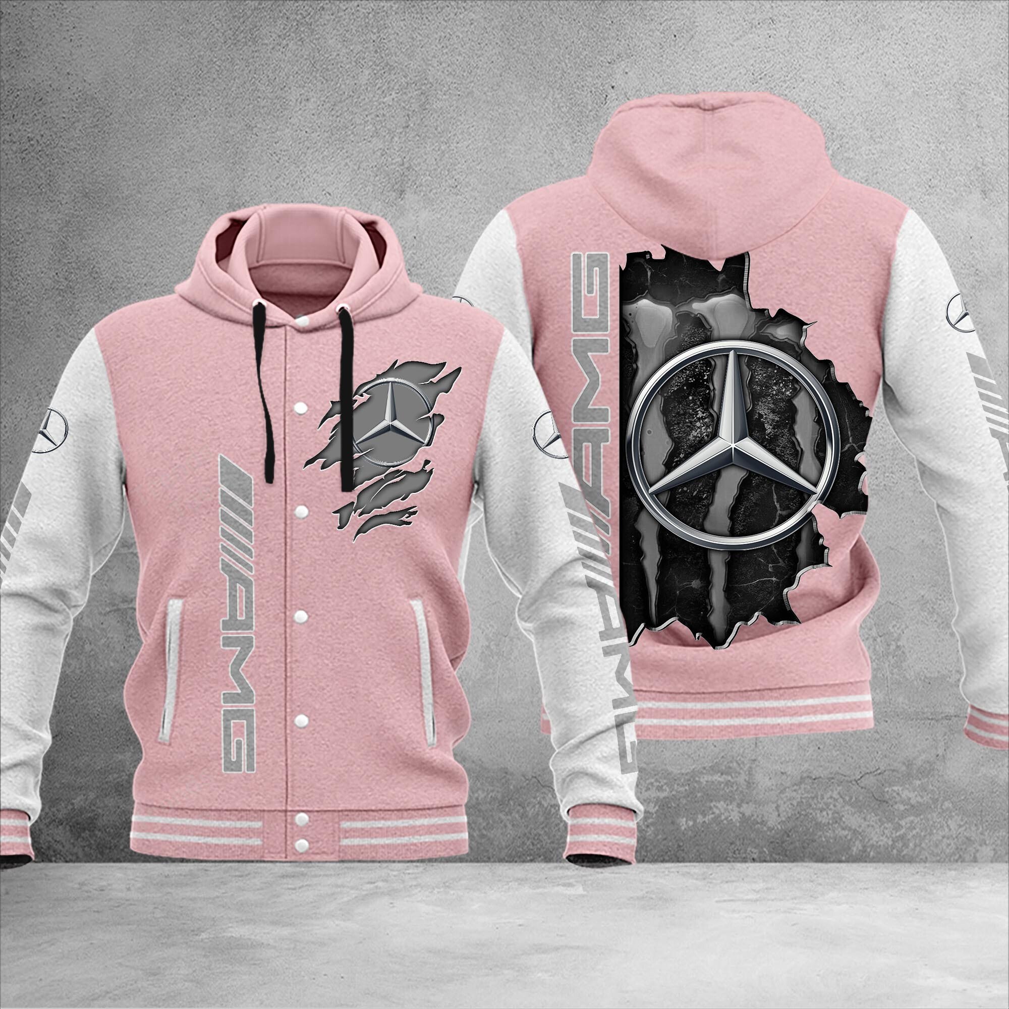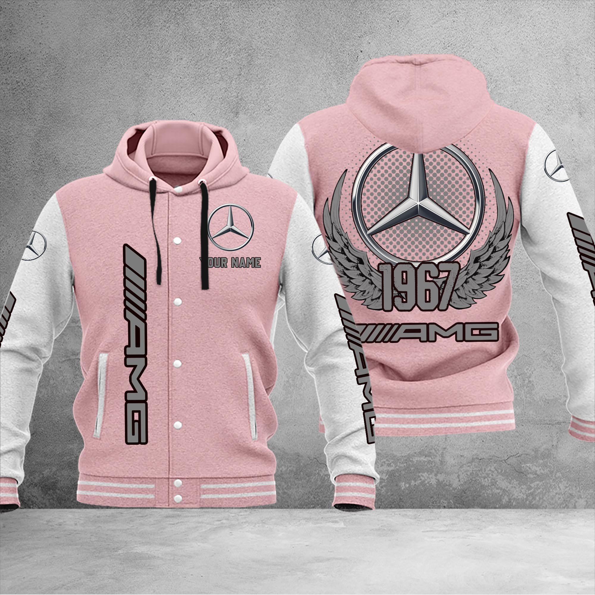 AMG Personalized Hooded Baseball Jacket For Fans Pink