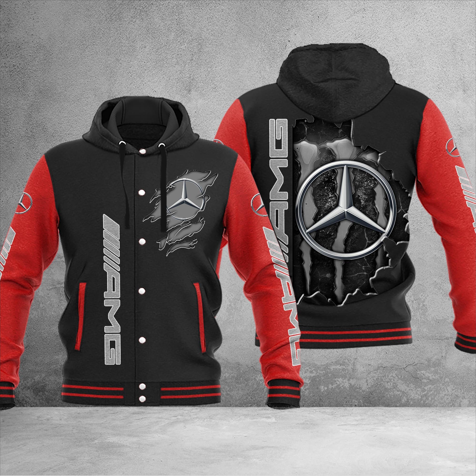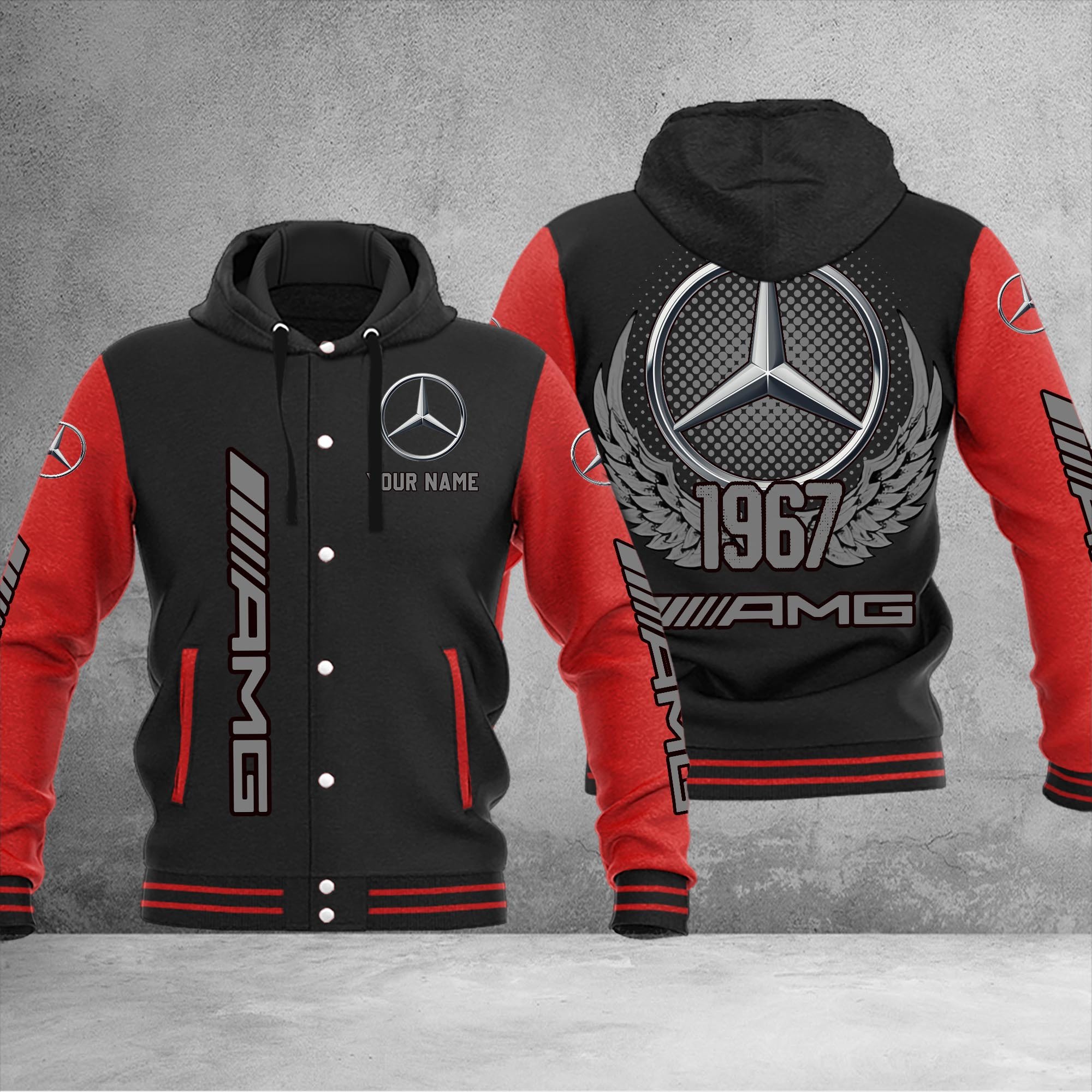 AMG Personalized Hooded Baseball Jacket For Fans Red Black