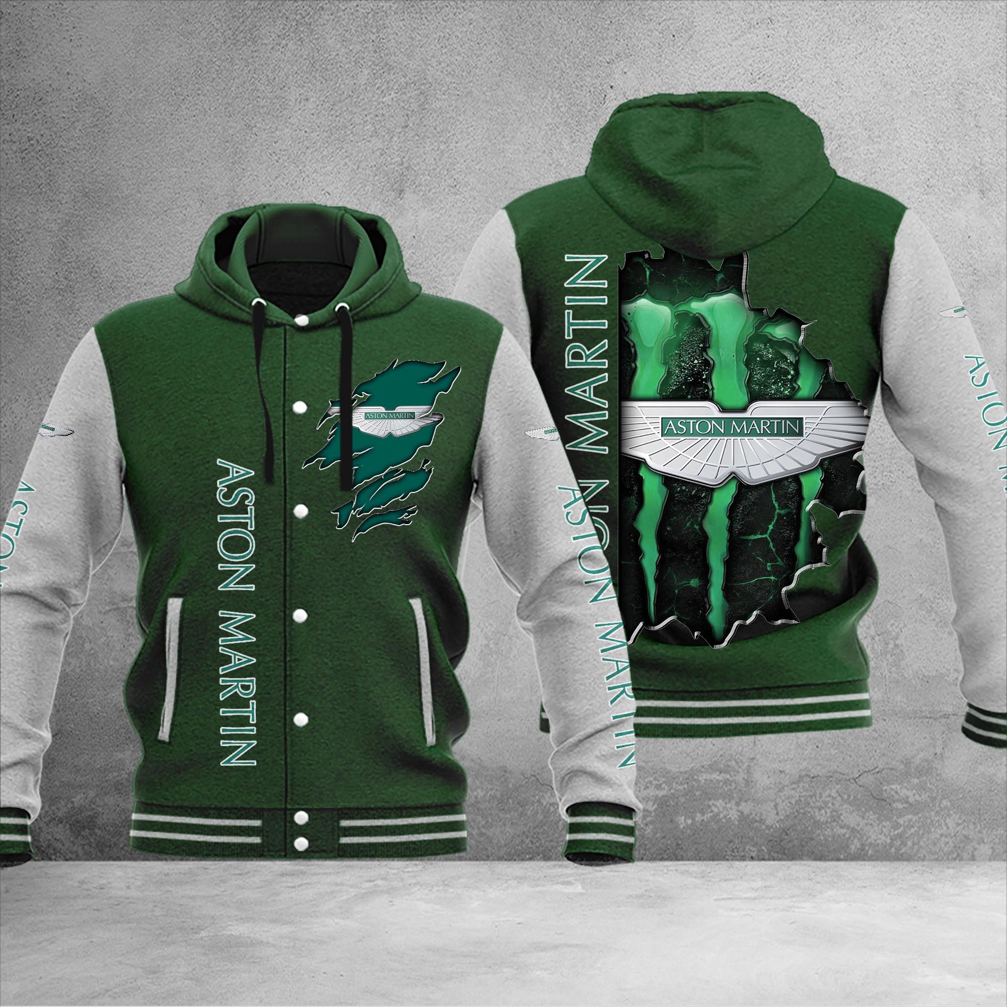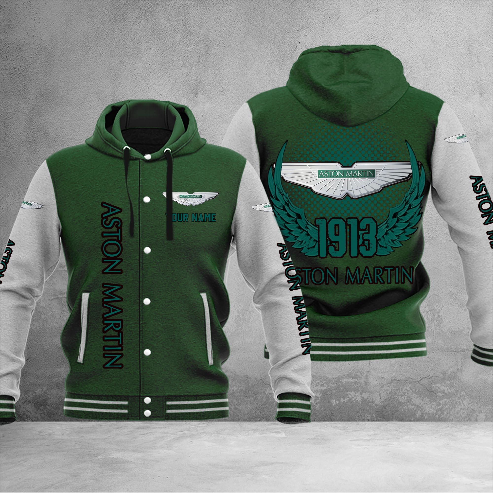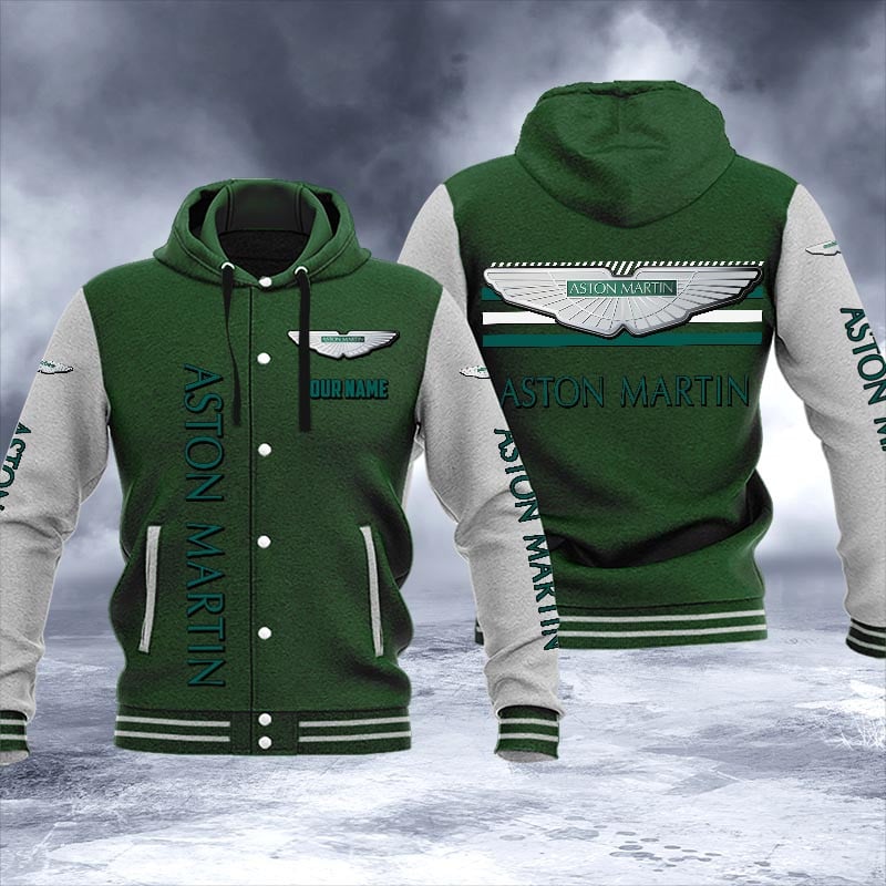 Aston-Martin Personalized Hooded Baseball Jacket For Fans Green